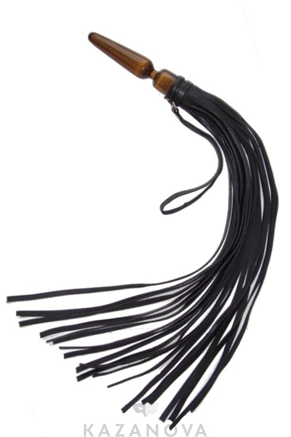 Плеть черная из натуральной кожи с рукоятью-анальной пробкой