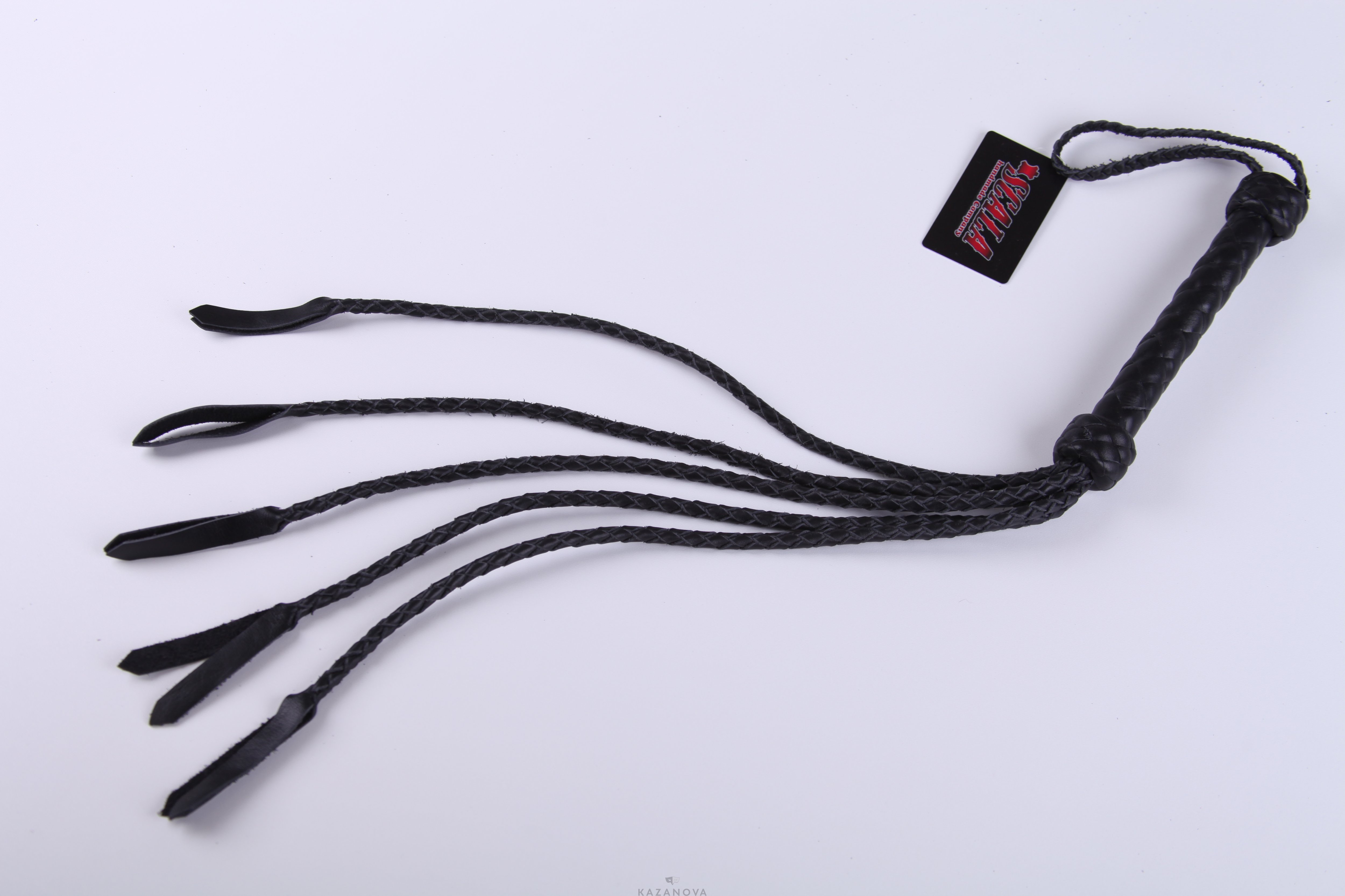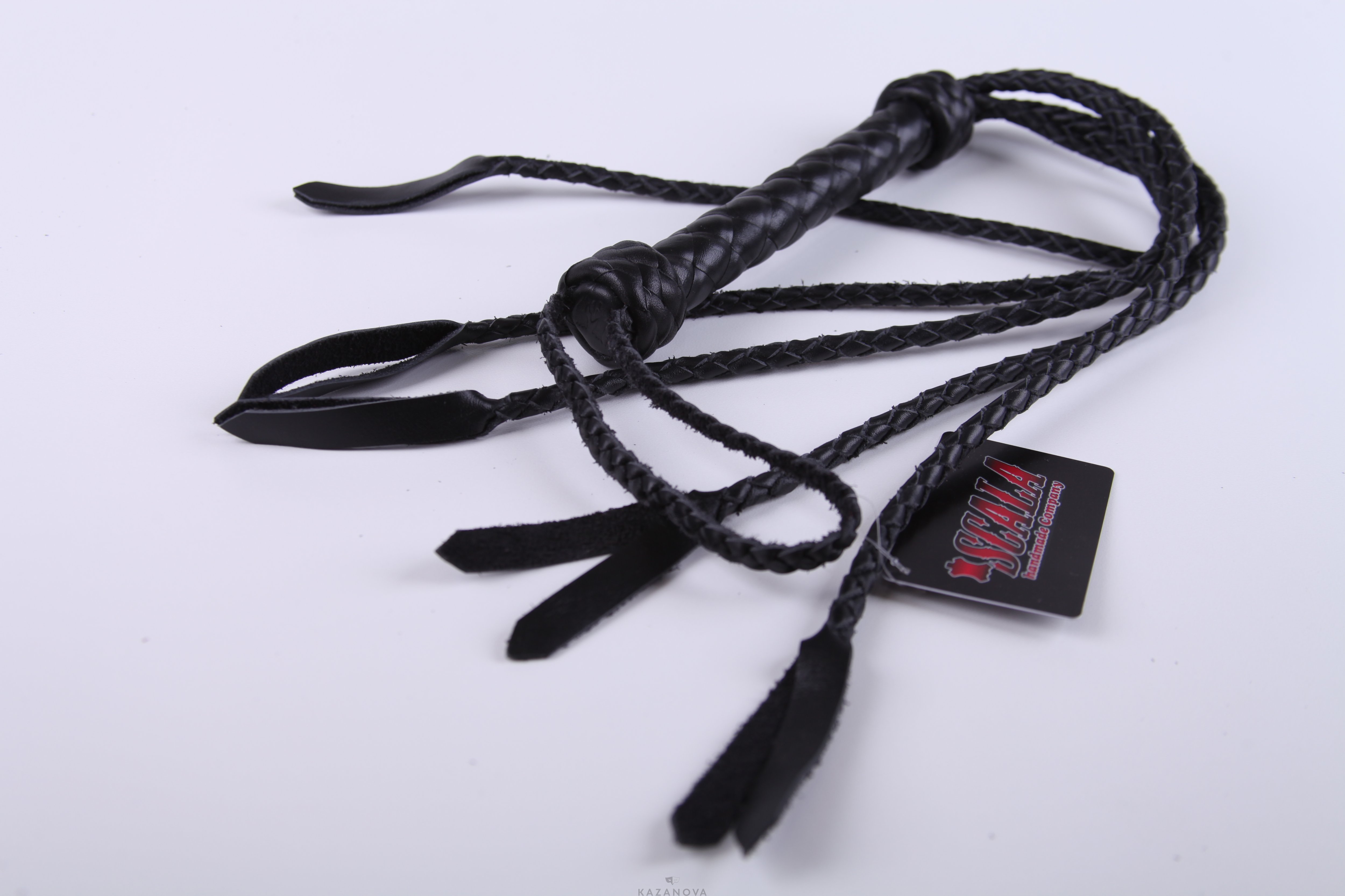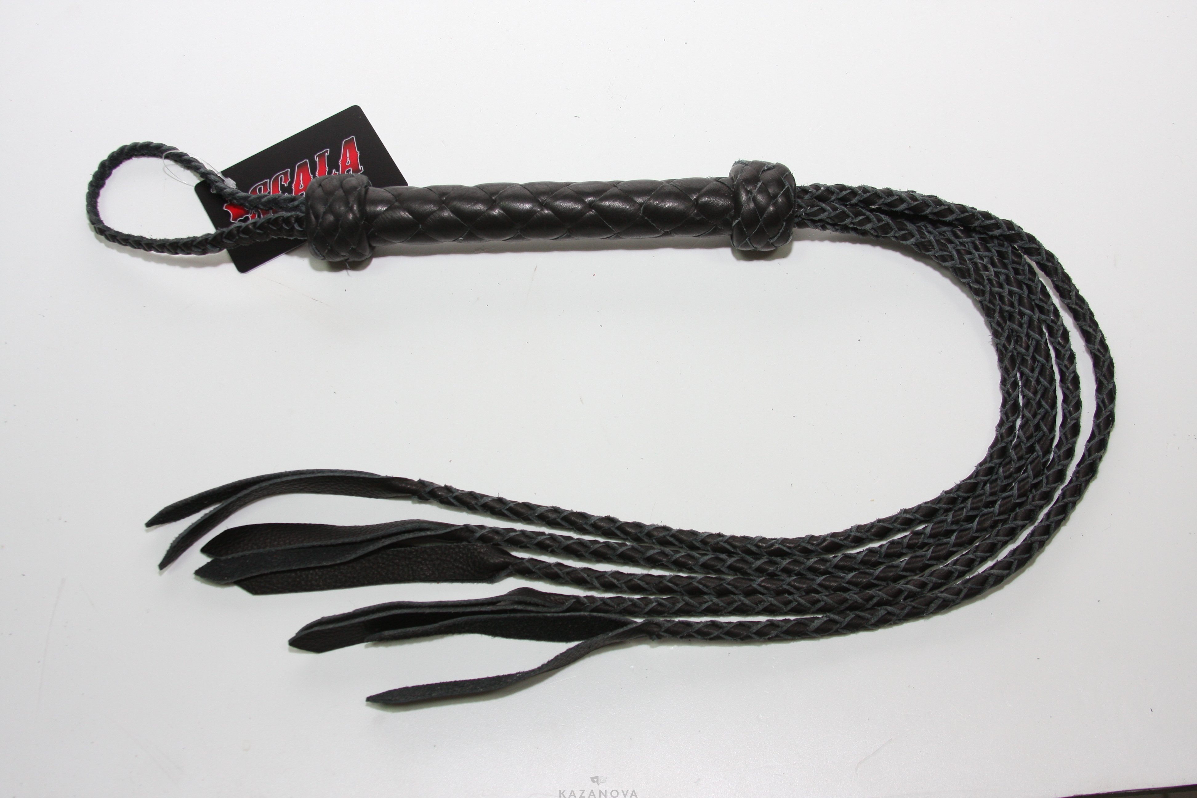 Плеть Scala «Кот» изготовлена из мягкой натуральной кожи. Девайс имеет жесткую рукоять, сделанную из кожи, гладкие хвосты с хлопушками на концах и удобную петлю, фиксирующуюся на запястье