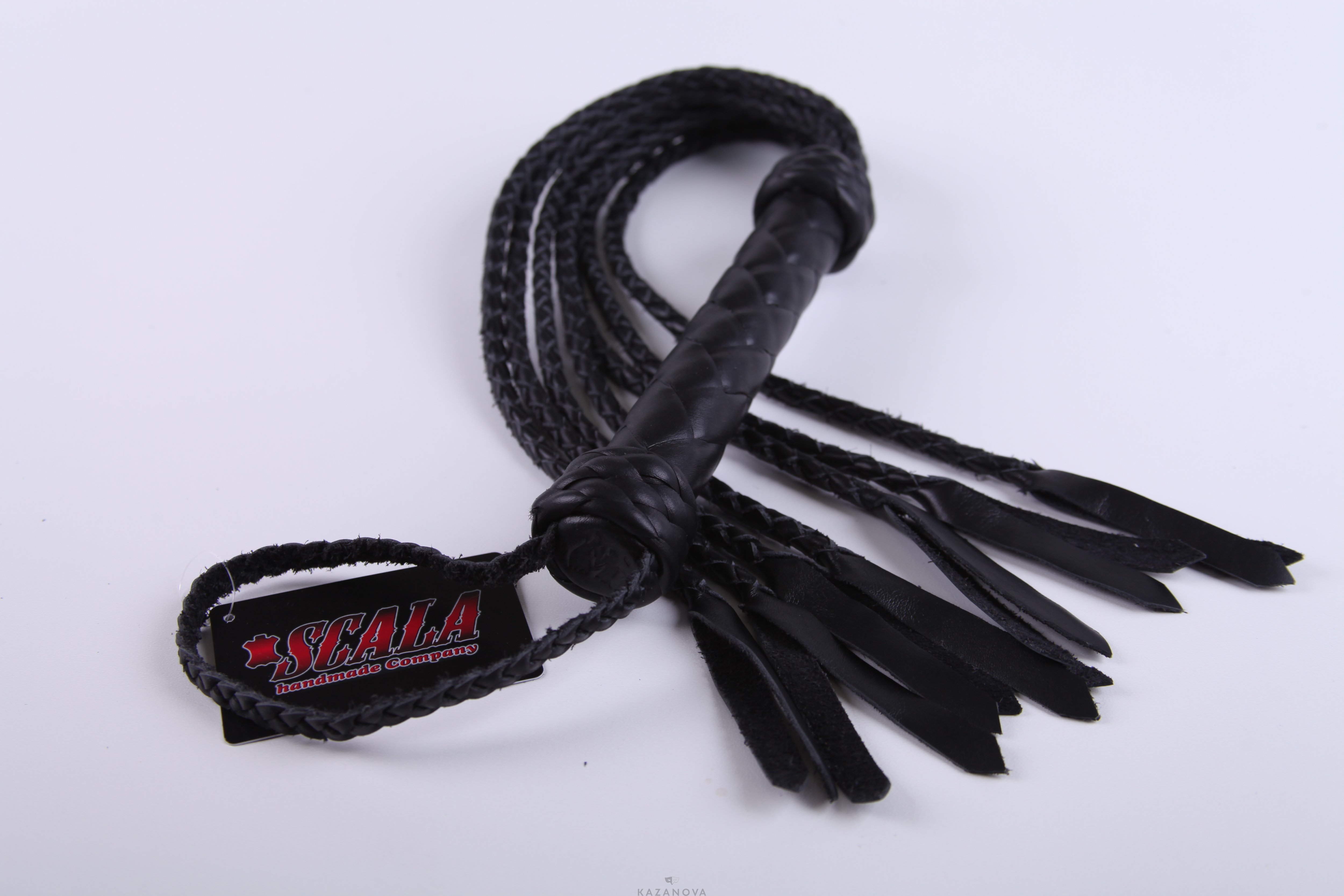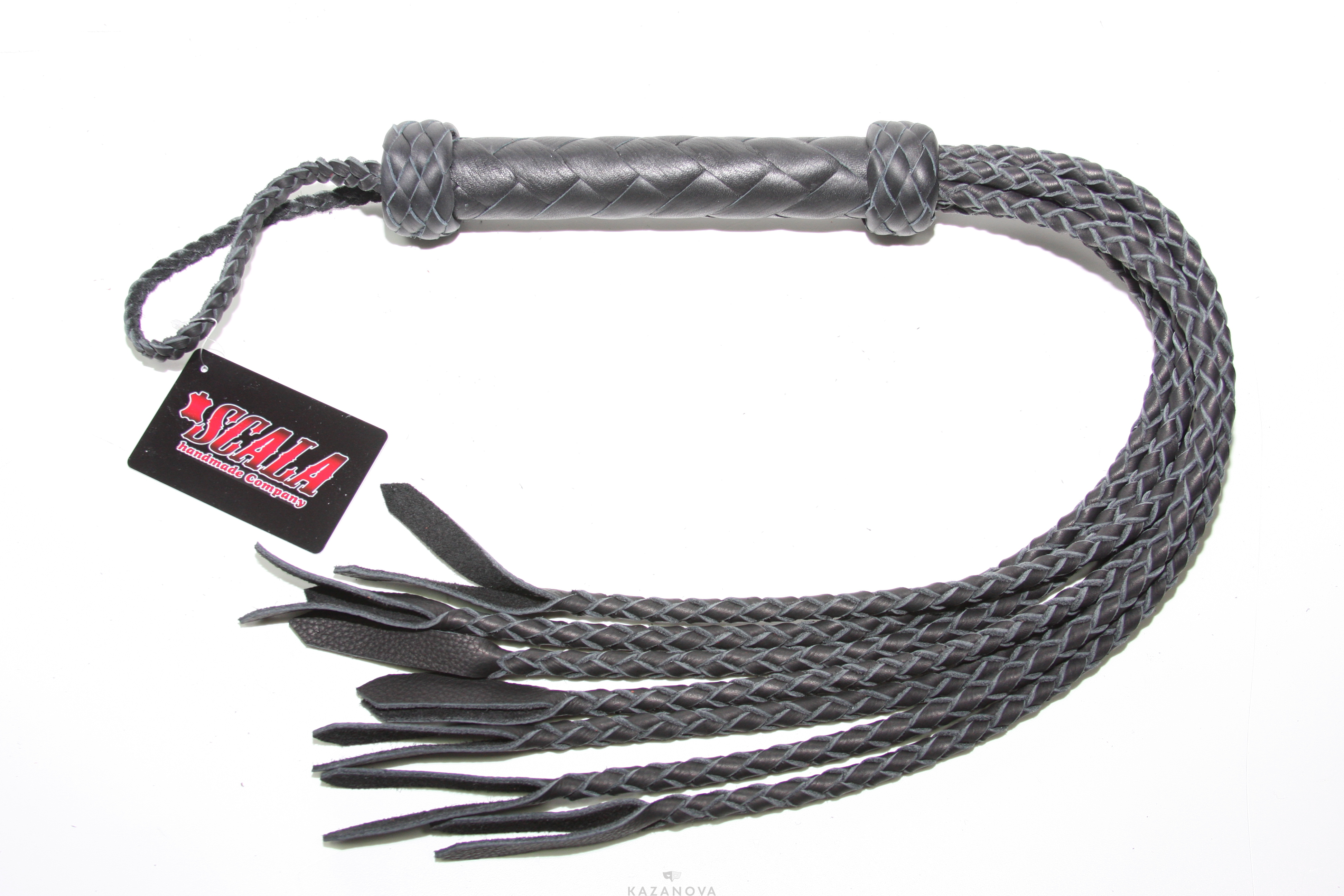 Плеть Scala «Мрак» изготовлена из мягкой натуральной кожи. Девайс имеет мягкую рукоять с темляком, сделанную из кожи, 7 плетеных хвостов и удобную петлю, фиксирующуюся на запястье