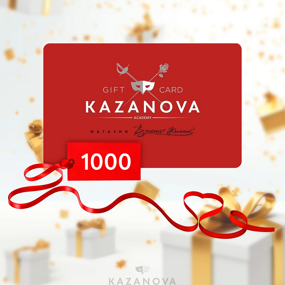 - Подарочной картой можно оплатить товар на сайте или в любом розничном магазине KAZANOVA academy.