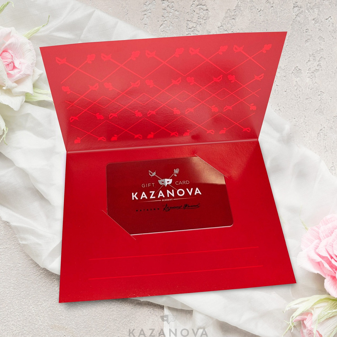 - Подарочной картой можно оплатить товар на сайте или в любом розничном магазине KAZANOVA academy.