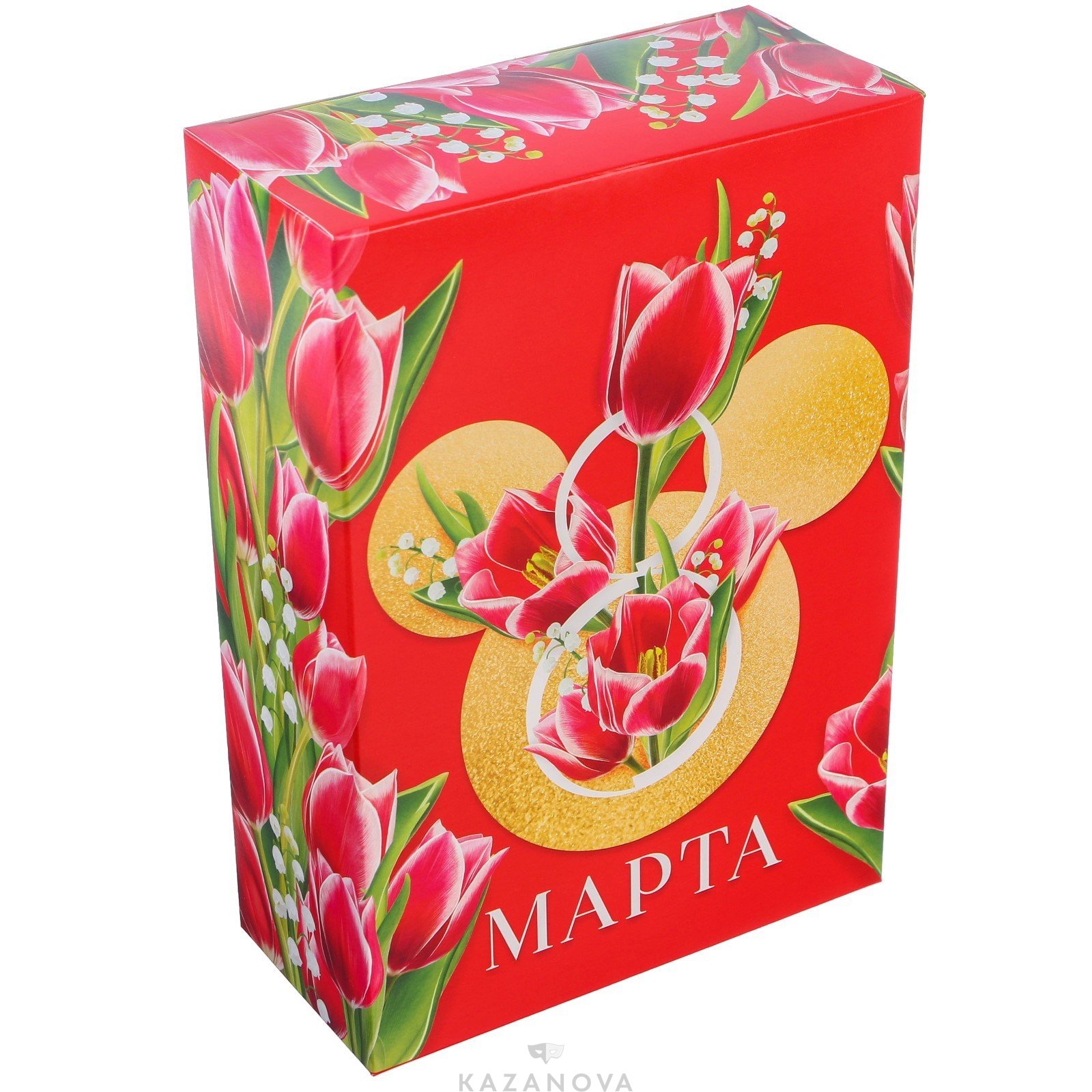 Подарочная коробка «8 марта» с ярким рисунком подчеркнет особенные чувства дарителя.