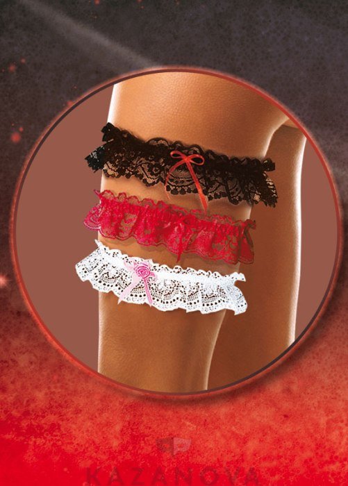 Кружевная подвязка для чулок, украшенная маленьким атласным бантиком.