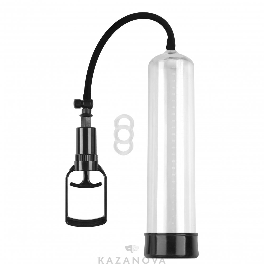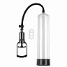 Вакуумная помпа изготовлена из пластика. В комплект входит силиконовая манжета. Помпа оснащена грушевым механизмом. В отличие от груши, поршневой механизм откачивает воздух медленнее, что позволяет контролировать процесс. Кроме того, поршневой механизм более надежен, чем груша.