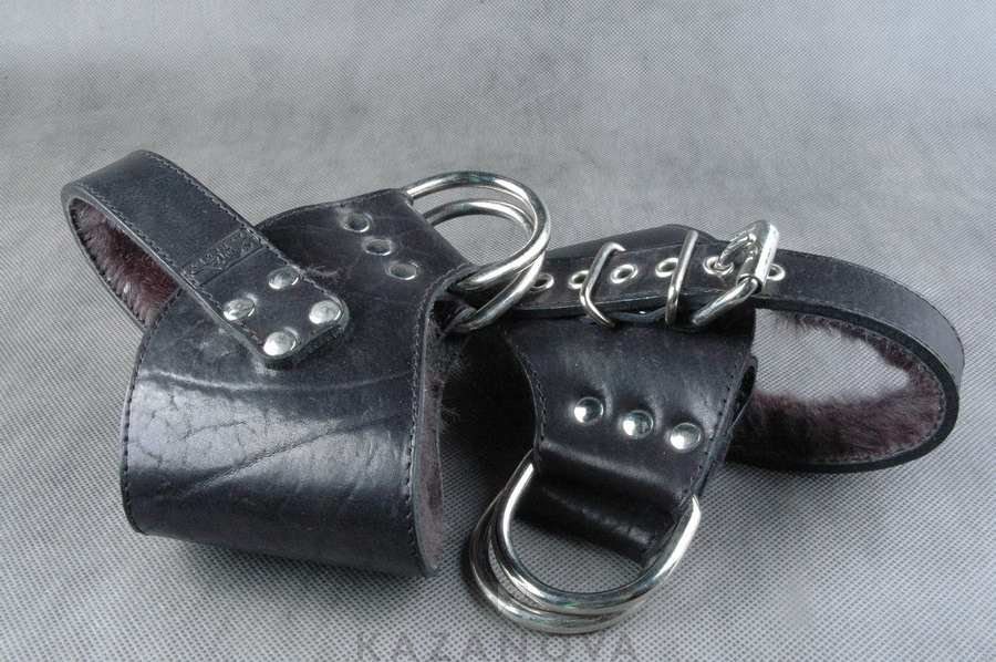 Поножи надежно фиксируются на ногах, что существенно затрудняет возможность снять их самостоятельно без помощи партнера.