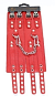 Поножи Crazy Handmade изготовлены из натуральной кожи красного цвета и декорированы металлическими элементами.