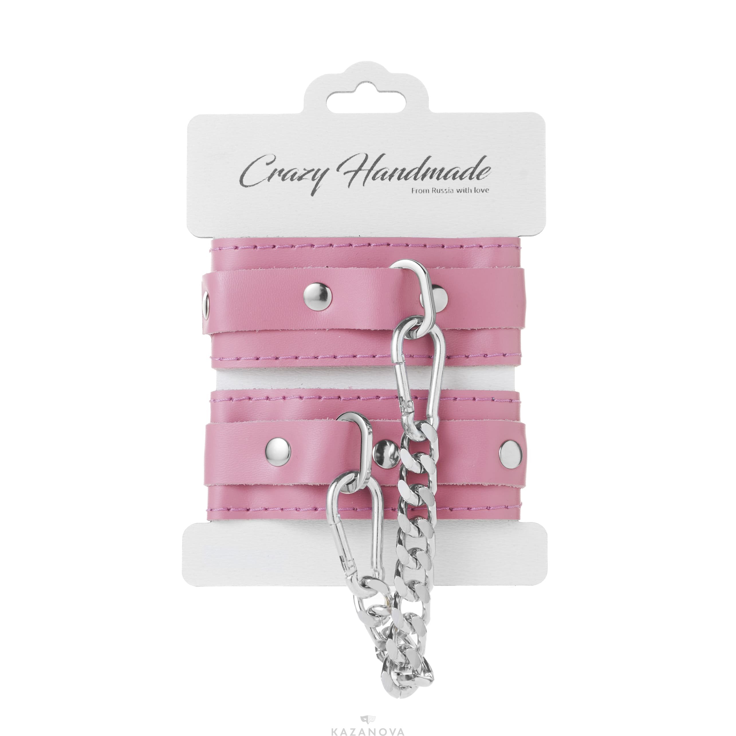 Поножи Crazy Handmade узкие с прострочкой из натуральной кожи розовые
