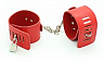 Красные поножи с замком идеально подходят для бондажа и фиксации.