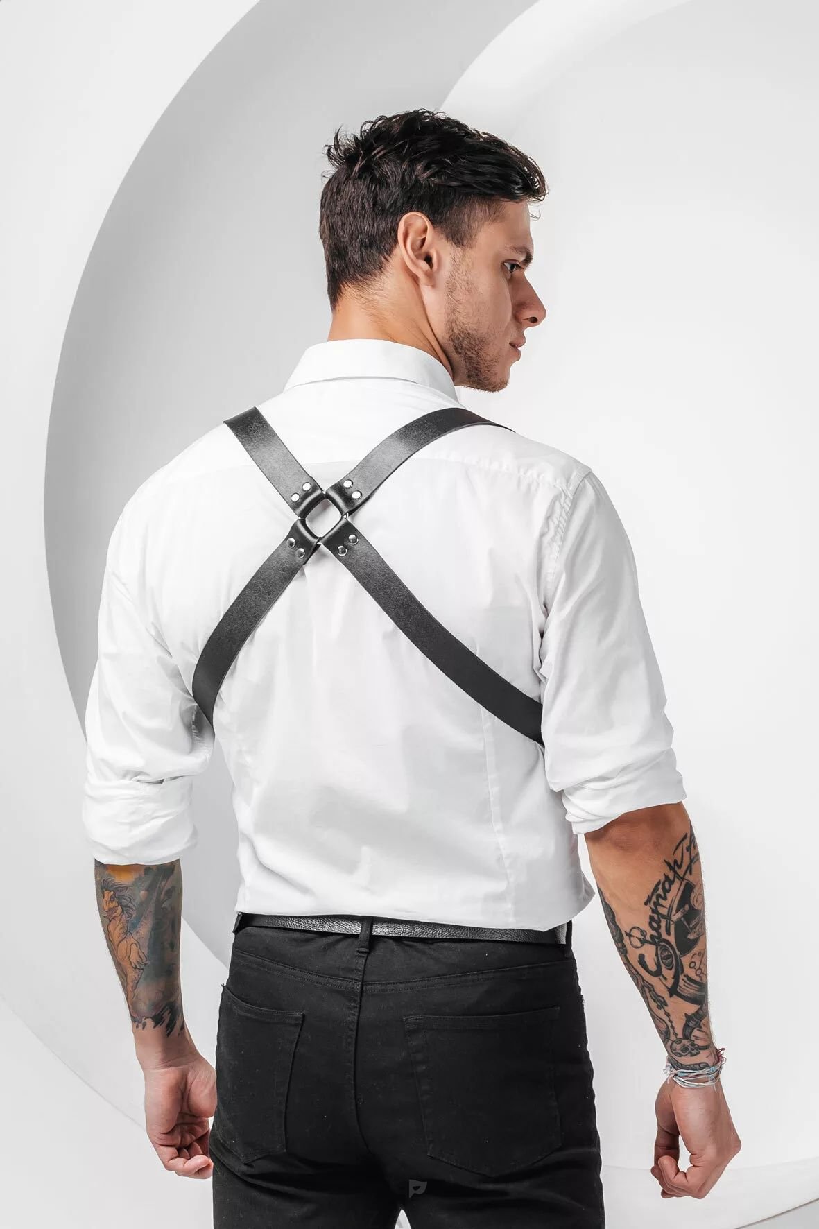 Портупея сочетается и комбинируется с другими аксессуарами. Отлично смотрится с однотонной одеждой и особенно с белой рубашкой.
