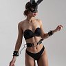 Пояс с наручниками сделан из натуральной кожи. Аксессуар плотно облегает тело и запястья.