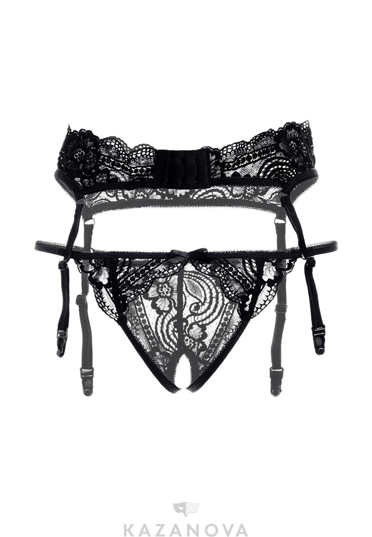 Пояс для чулок кружевной и трусики с генитальным доступом
