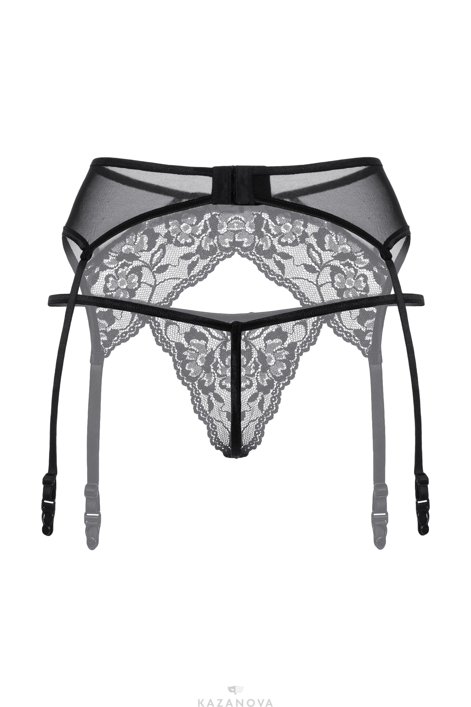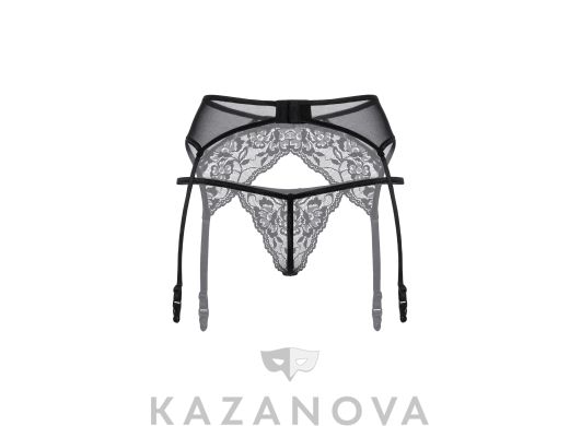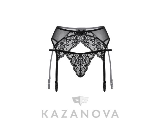 Пояс для чулок полупрозрачный с кружевными вставками и стринги 3317