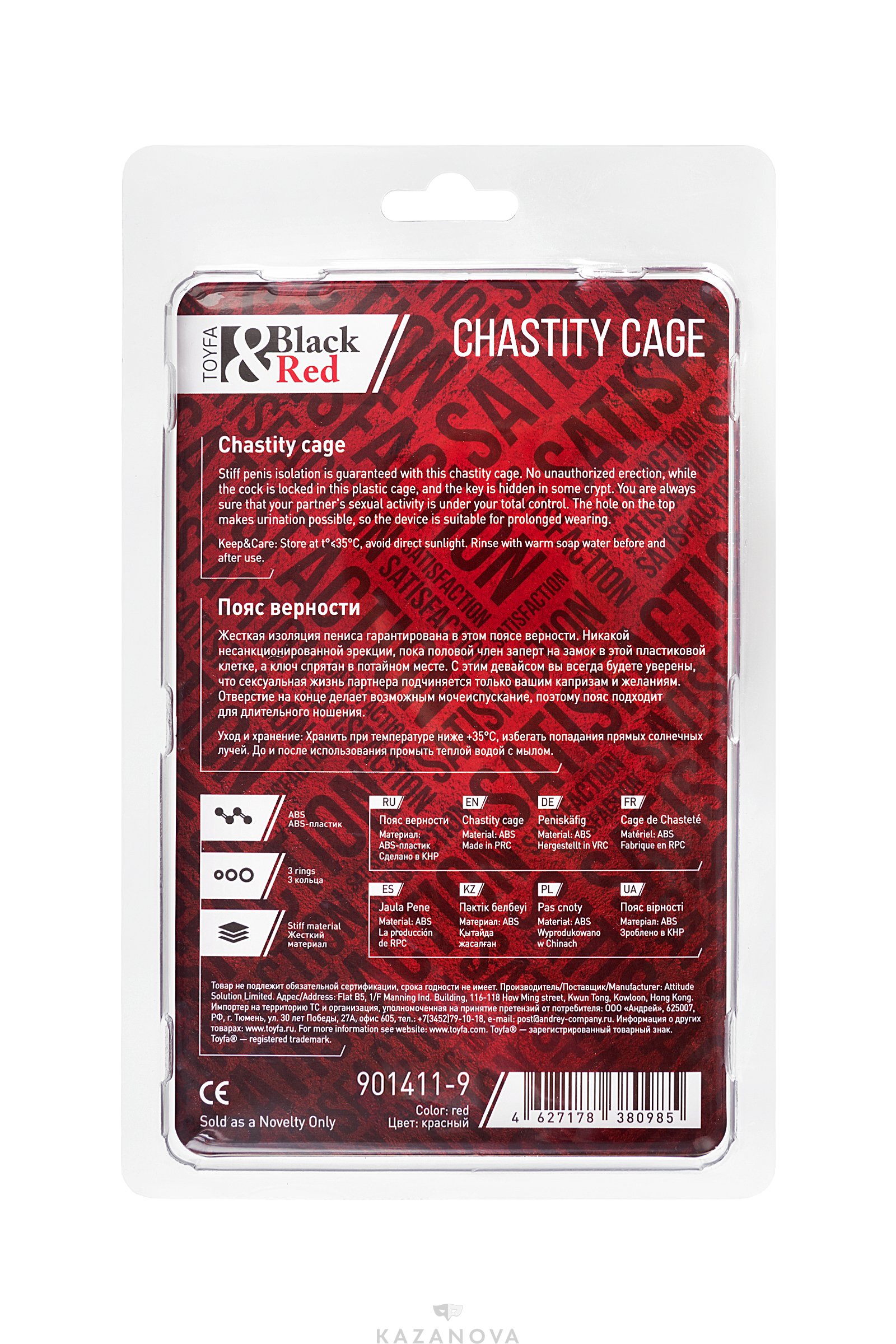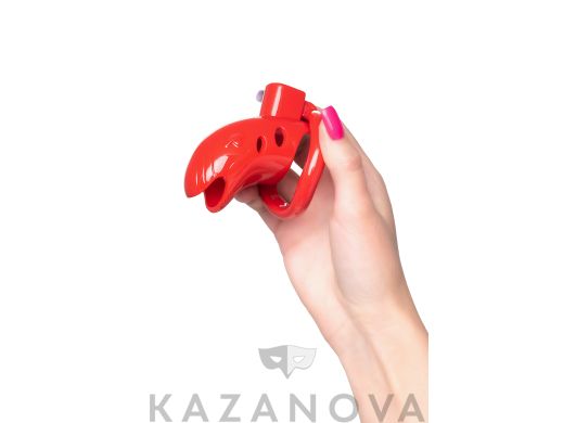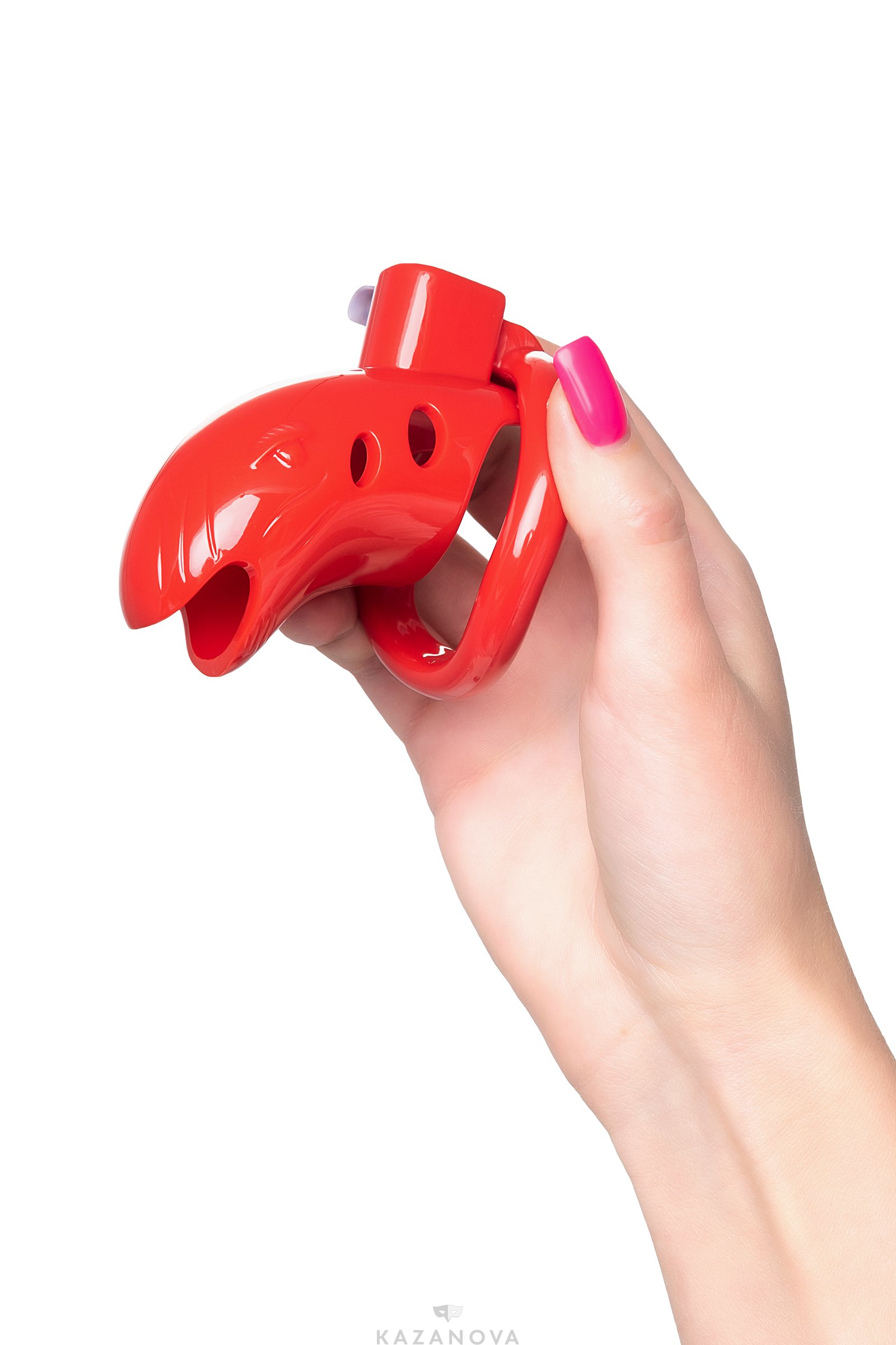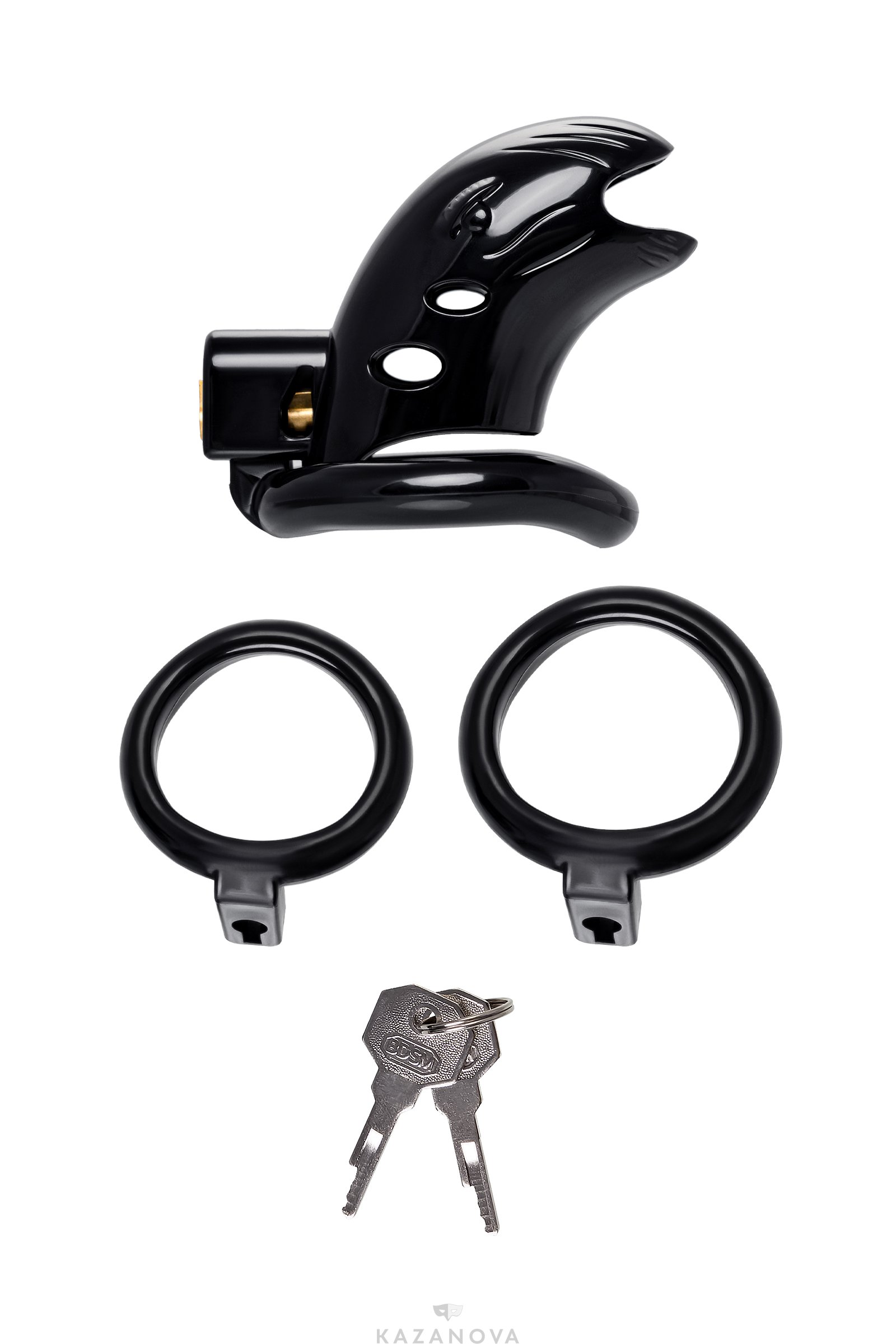 Отверстие на конце делает возможным мочеиспускание, поэтому пояс подходит для длительного ношения. В комплекте три пластиковых кольца разного диаметра, подходящих для разных размеров пенисов и вариантов ношения.