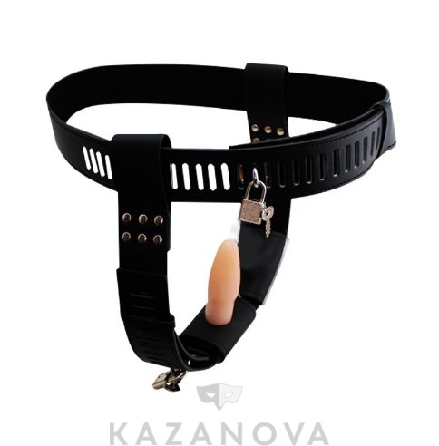 Пояс верности подстраивается под индивидуальные параметры и ограничивает возможность полового акта. В комплект входит фаллоимитатор для вагинальной стимуляции.