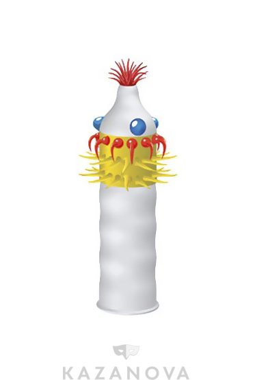 Презерватив в обильной силиконовой смазке. Имеет объёмные латексные шарики и усики для дополнительной стимуляции партнёрши.