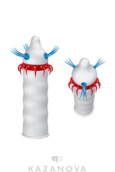 Презерватив в обильной силиконовой смазке. Имеет объёмные латексные усики для дополнительной стимуляции партнёрши.
