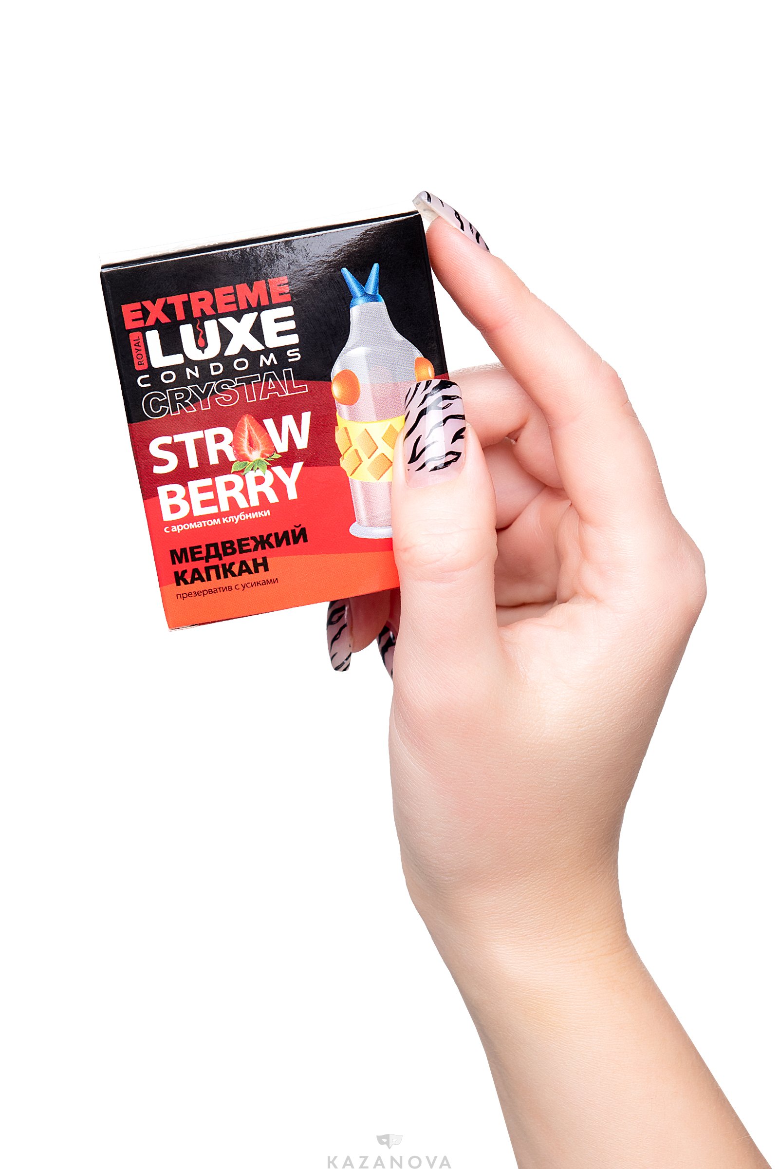 Изысканный рельеф с ребрами и выпуклыми шариками позволит усилить стимуляцию, открывая новые грани взаимного наслаждения. Медвежий капкан - это мертвая хватка захватывающих ощущений от проникновения и движения. Аромат сладкой спелой клубники сделает процесс еще более сочным и волнующим.