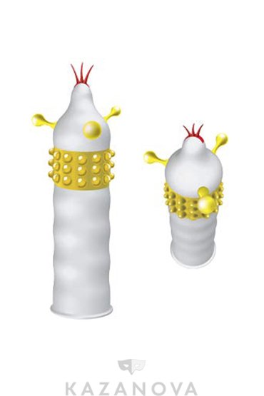 Презерватив в обильной силиконовой смазке. Имеет объёмные латексные шарики и усики для дополнительной стимуляции партнёрши.