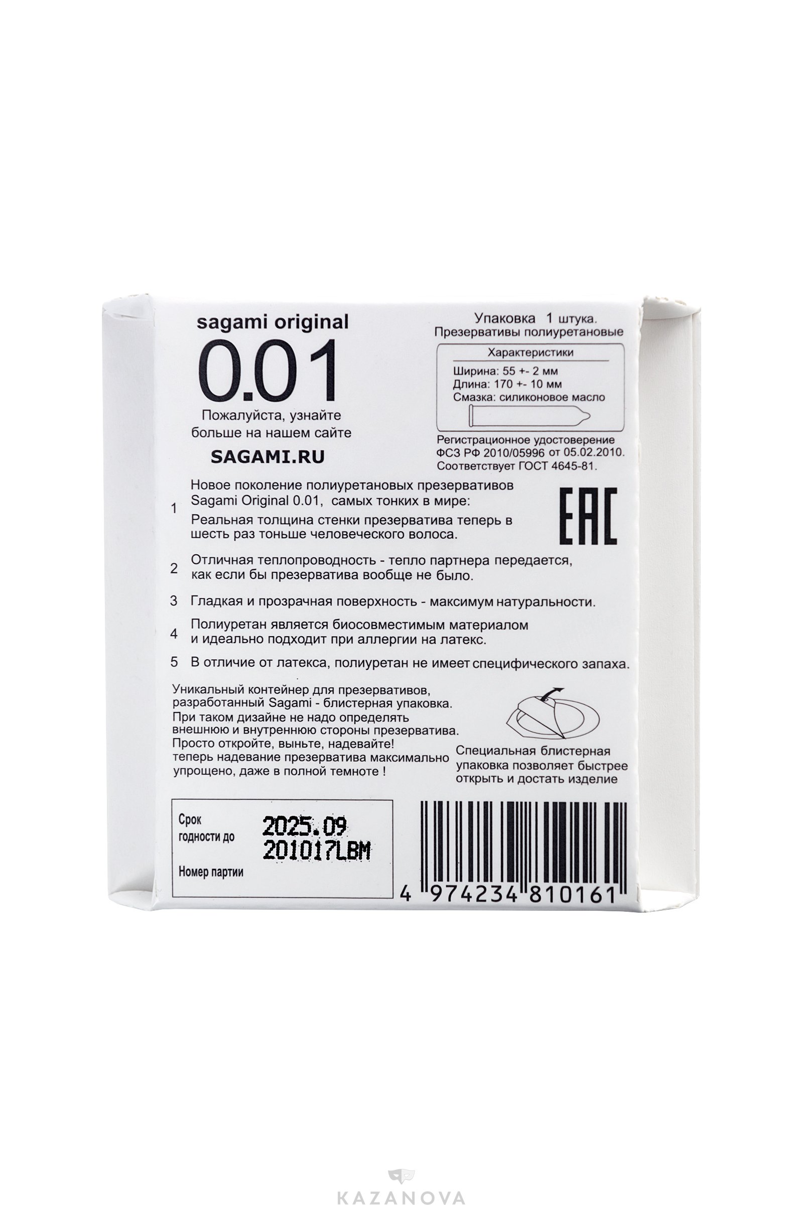 Презерватив полиуретановый сверхтонкий SAGAMI Original 0,01 1 шт.