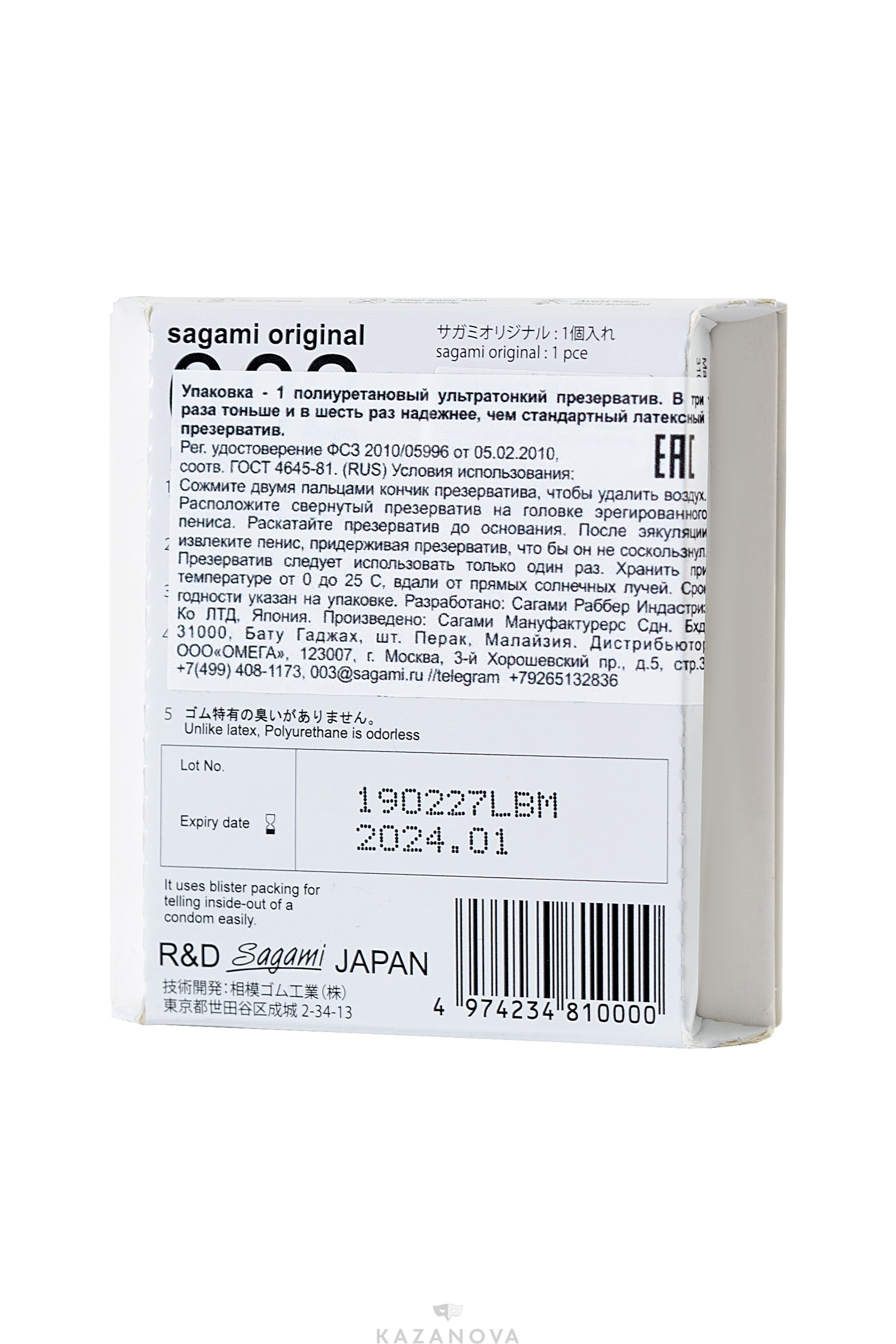 Презерватив полиуретановый сверхтонкий SAGAMI Original 0,02 1 шт.