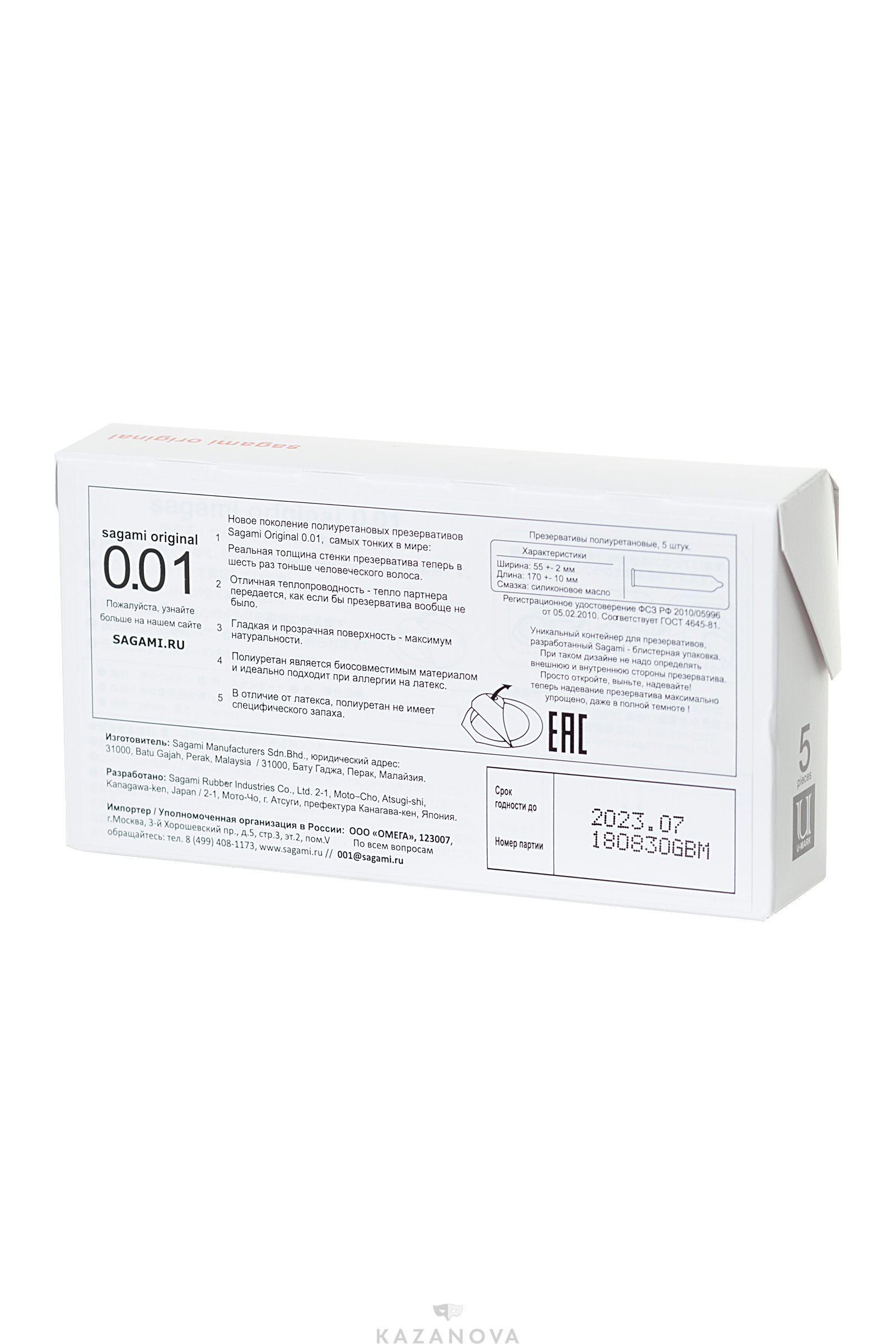 Презервативы полиуретановые сверхтонкие SAGAMI Original 0,01 5 шт.