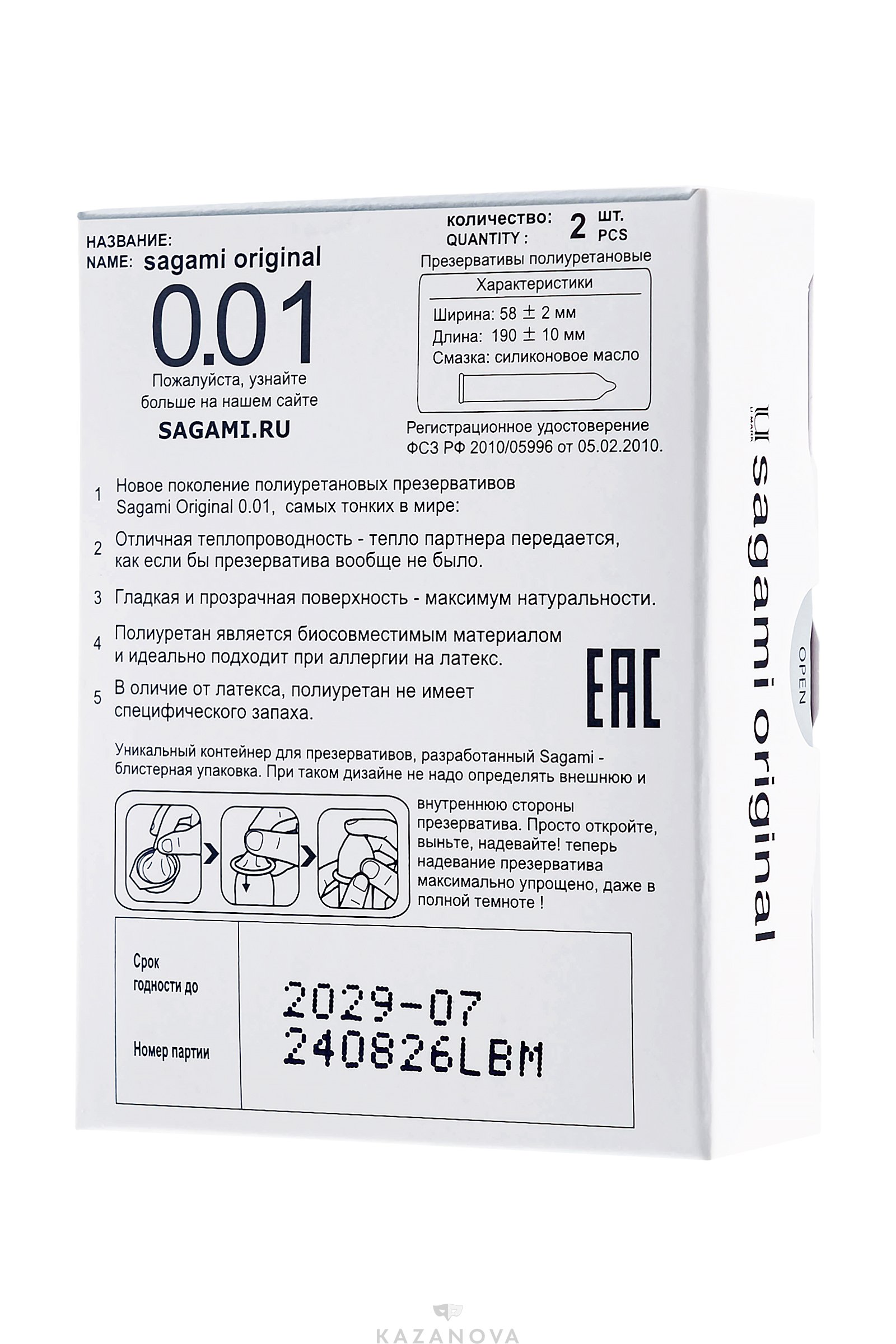 Презервативы полиуретановые сверхтонкие SAGAMI Original 0,01 Large 2 шт.
