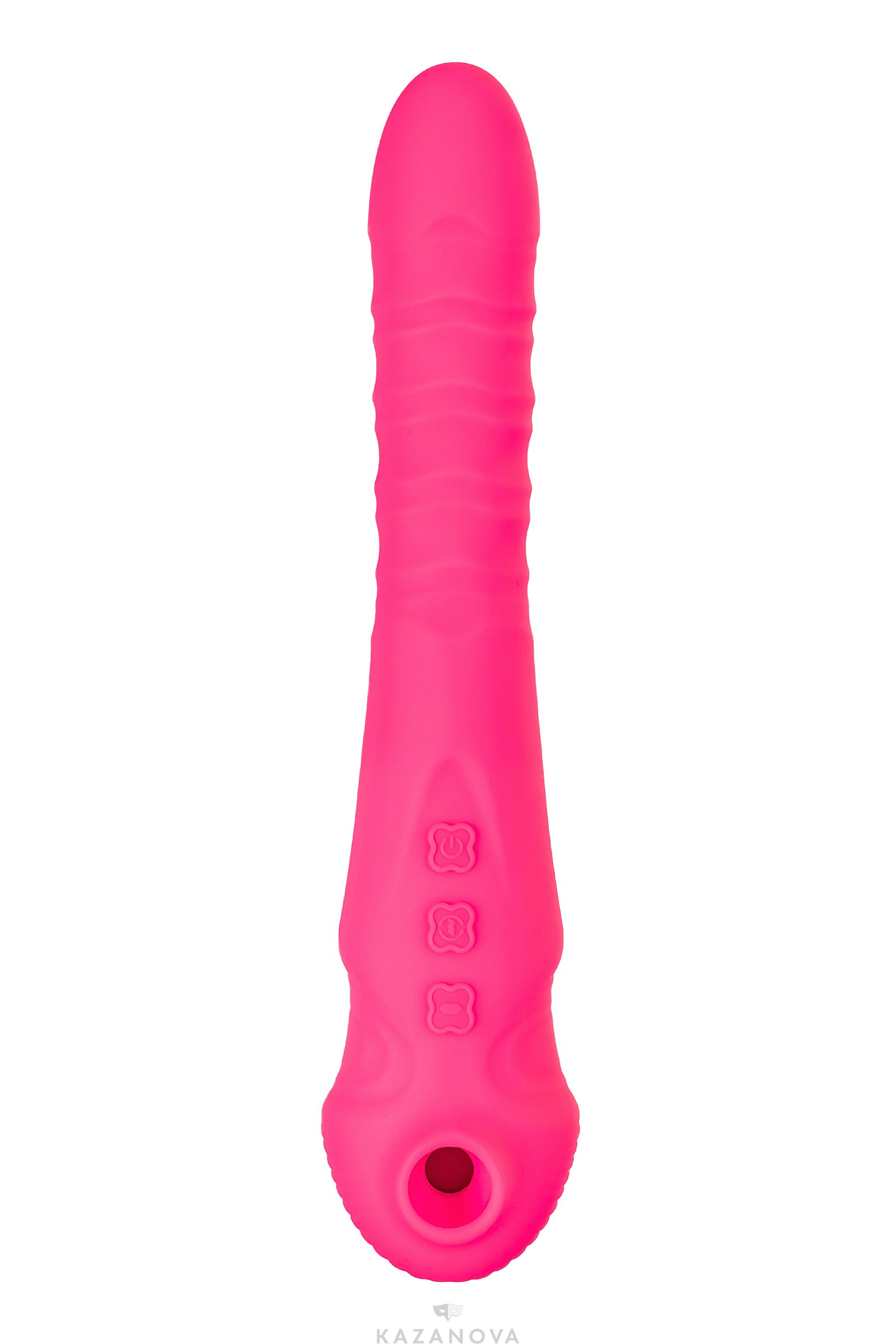 Погружная часть оснащена механизмом, который создает пульсирующие фрикции, словно настоящий контакт. Поступательные движения вперед и назад имитируют фрикции, даря максимальное удовлетворение. Вакуумная стимуляция второй части помогает достичь оргазма нового уровня яркости.