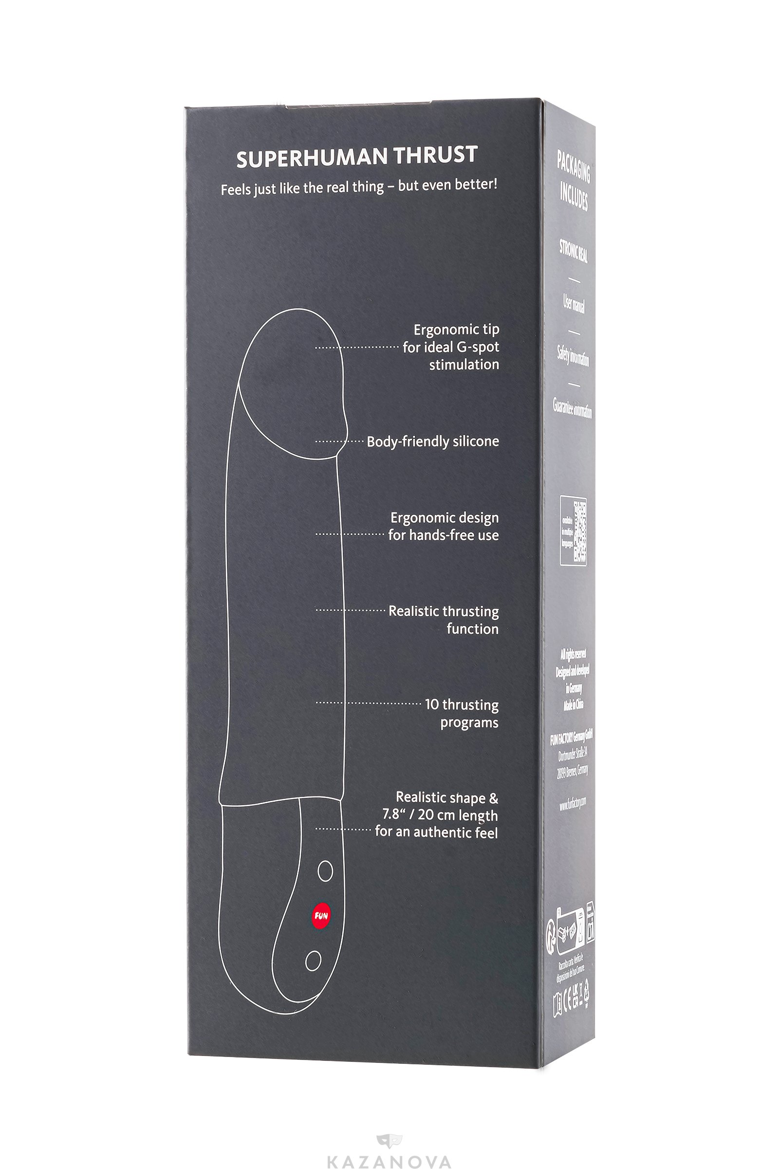 Благодаря перезаряжаемой батарее USB-C (кабель в комплект не входит) и водонепроницаемому корпусу (IPX7), вы можете брать STRONIC REAL с собой куда угодно – от спонтанных сеансов удовольствия до расслабляющих игр дома. А самое лучшее? Эргономичный дизайн позволяет использовать игрушку без помощи рук! Устройтесь поудобнее, дайте волю фантазии и позвольте STRONIC REAL побаловать вас, как настоящий партнер. Совет профессионала: используйте смазку на водной основе для еще более интенсивных ощущений!