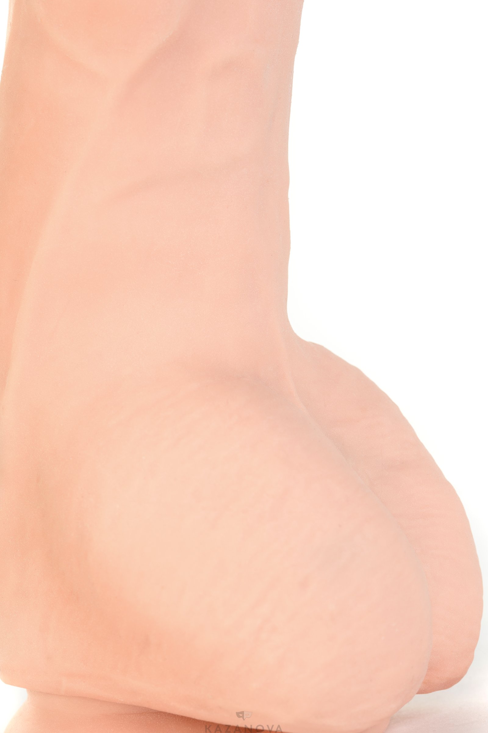 RealStick Elite изготовлен в лучших традициях реализма: крупная головка без крайней плоти, упругий ствол с переплетением возбужденных вен и мощная мошонка.