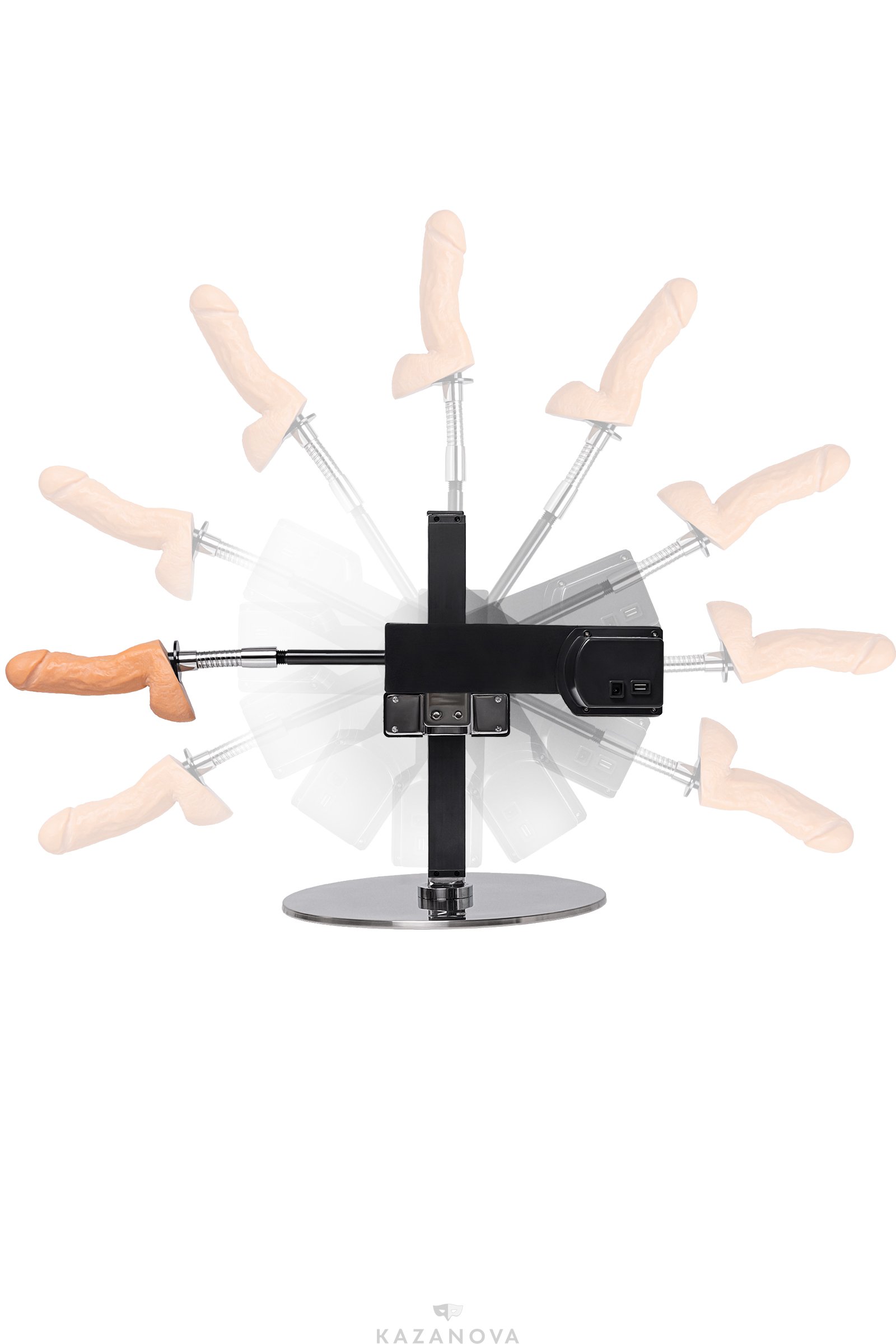 Diva Bendy - это хромированная металлическая конструкция с штативом, насадкой-фаллоимитатором и устойчивым круглым основанием, которое обеспечивает превосходную устойчивость даже на мягких поверхностях.