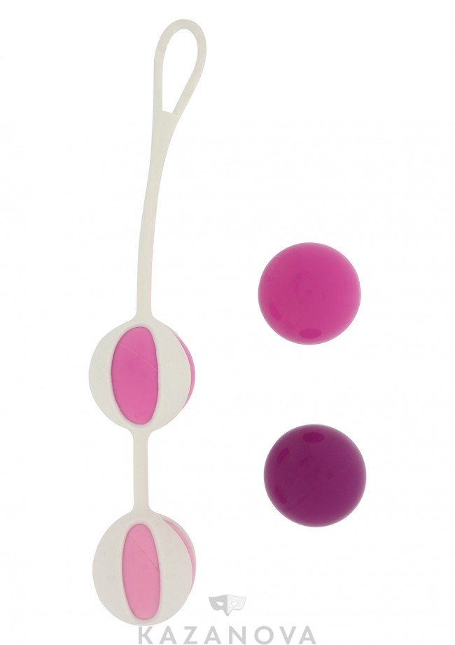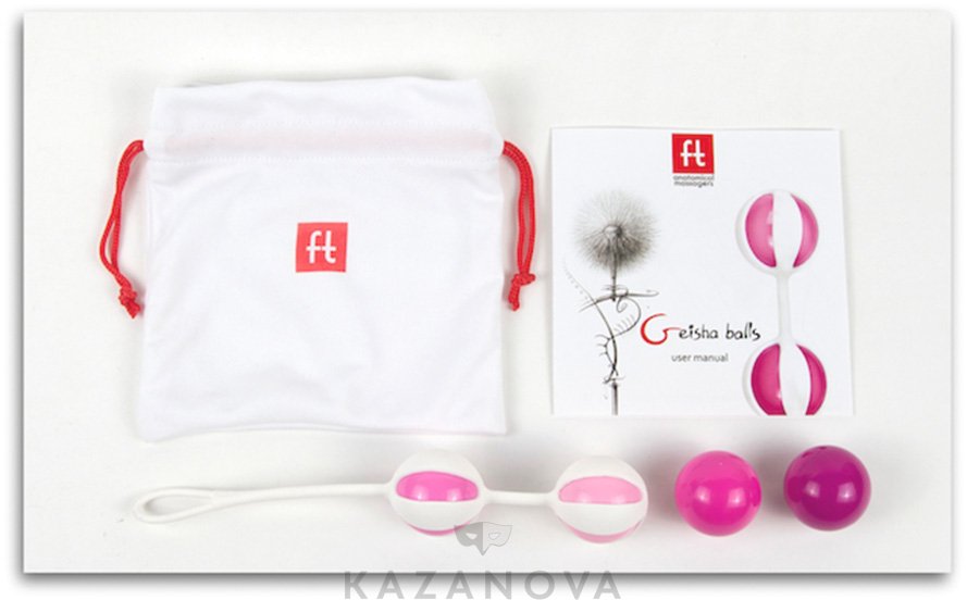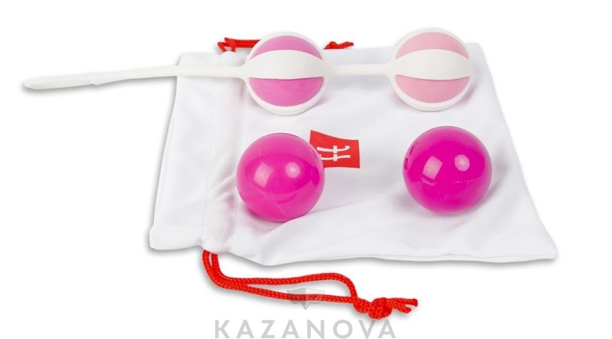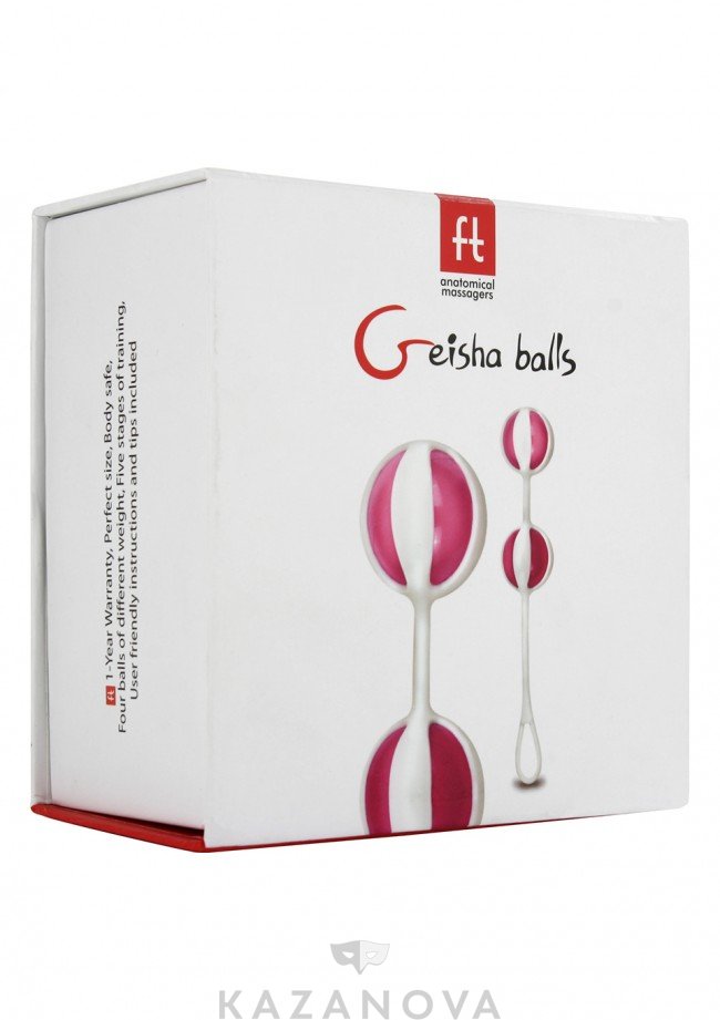 Geisha Balls – это тренажеры со смещенным центром тяжести. Внутри большей сферы находится шарик меньшего диаметра, который при каждом движении ударяется о стенки и вызывает природную вибрацию. Удобный и прочный силиконовый шнур с петлей позволяет легко извлечь устройство после тренировок. В комплект входят четыре шарика, которые можно комбинировать между собой и увеличивать или уменьшать вес интимного тренажера.