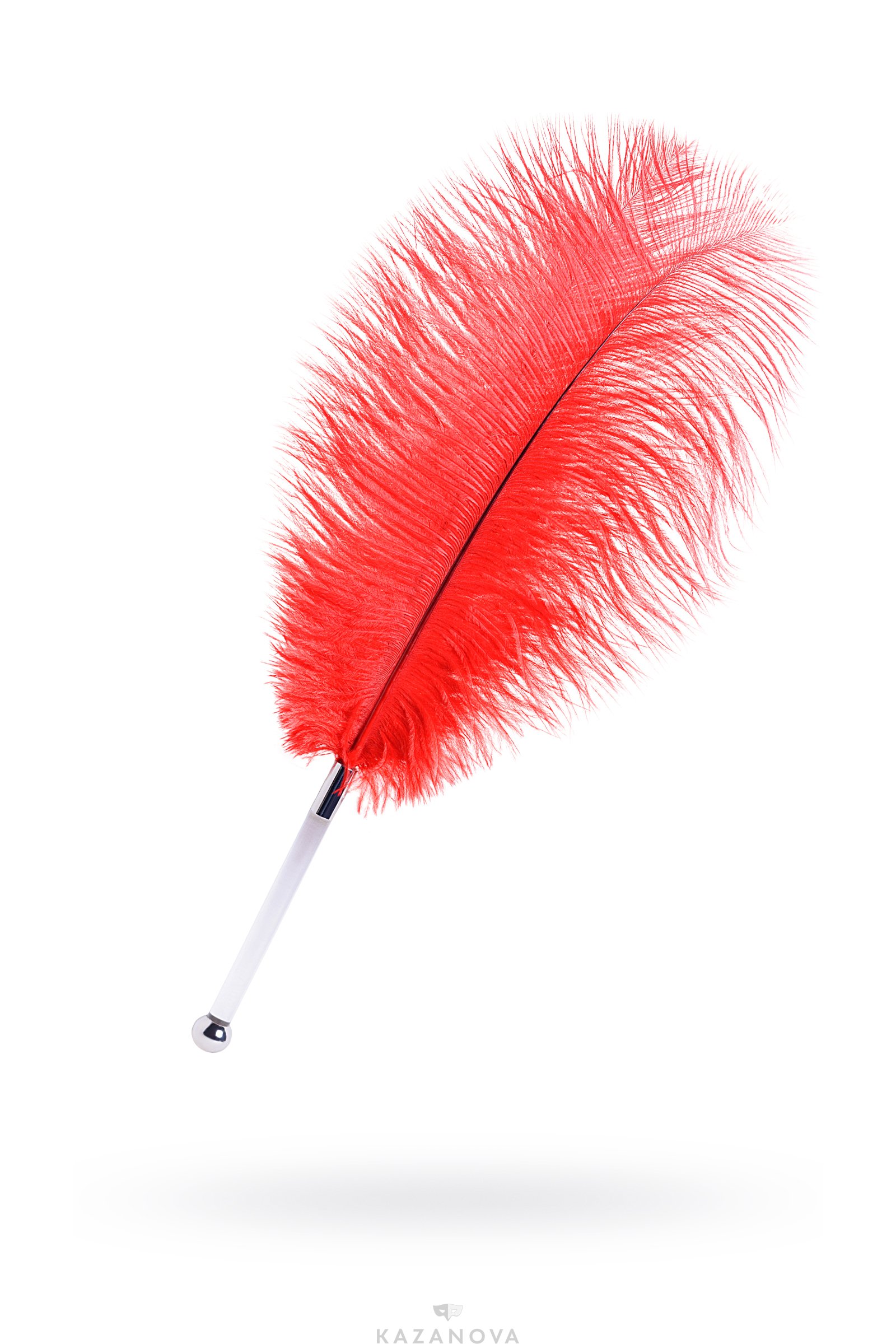 Щекоталка из натурального страусиного пера с пластиковой ручкой.