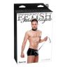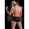 Мужские шорты из микросетки с вырезами на ягодицах. Спереди выполнена вставка из непрозрачного материала.