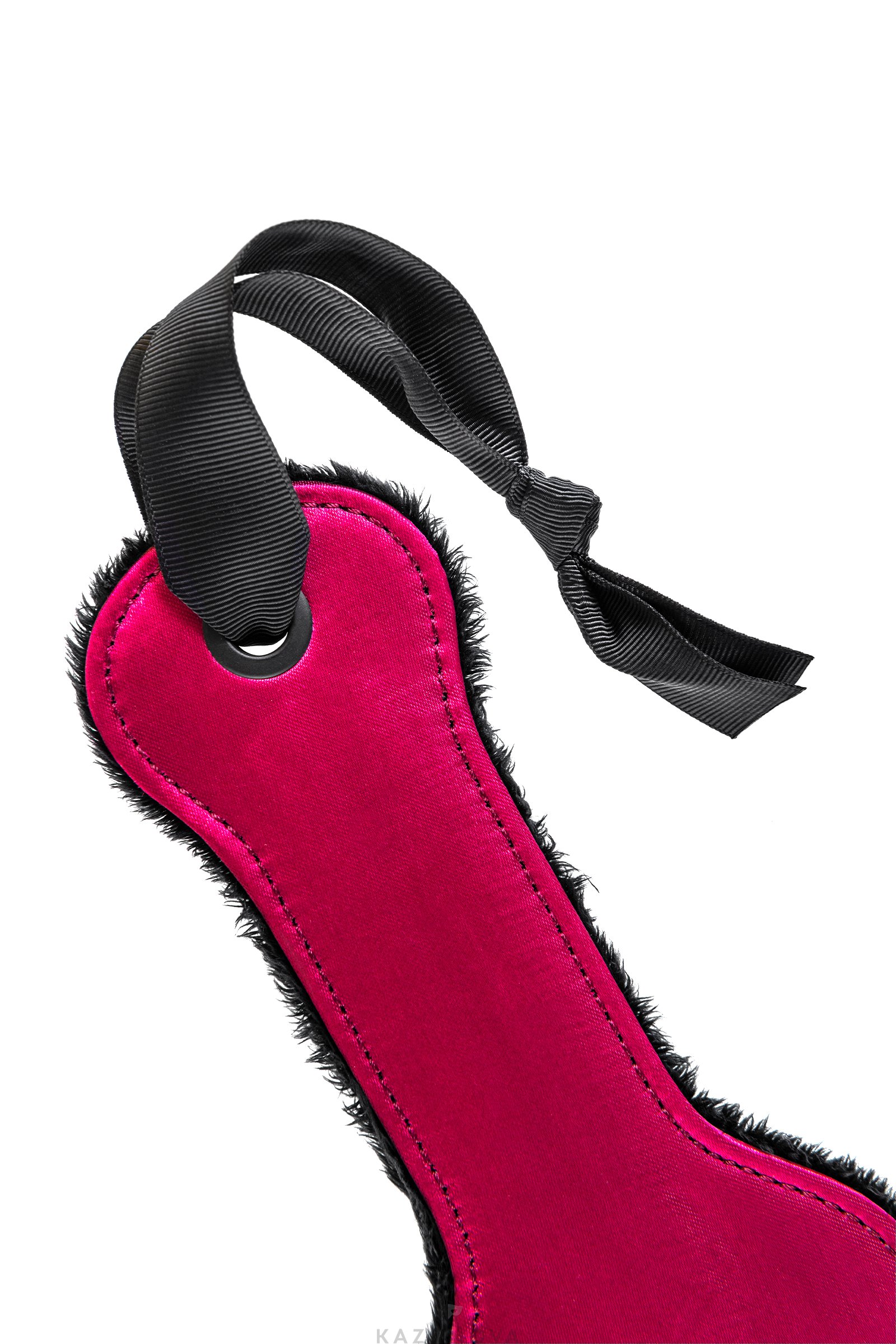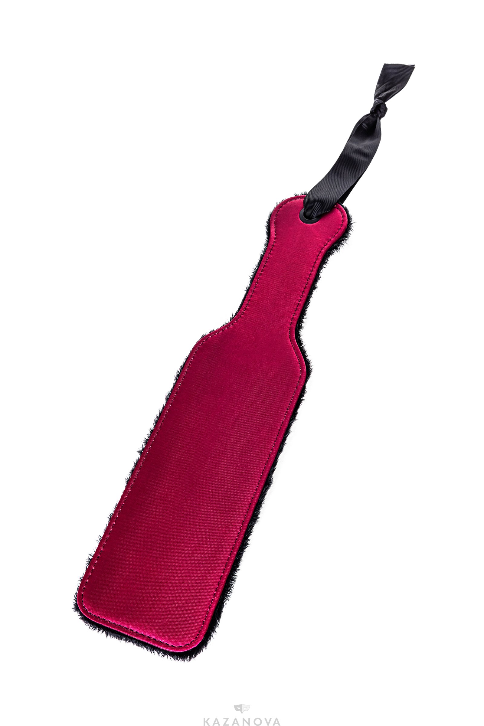 Красная сатиновая сторона холоднее на ощупь и жестче по воздействию. Черная сторона более мягкая и подходит для нежного наказания - легкие шлепки или поглаживания. Петля служит для более удобного захвата.