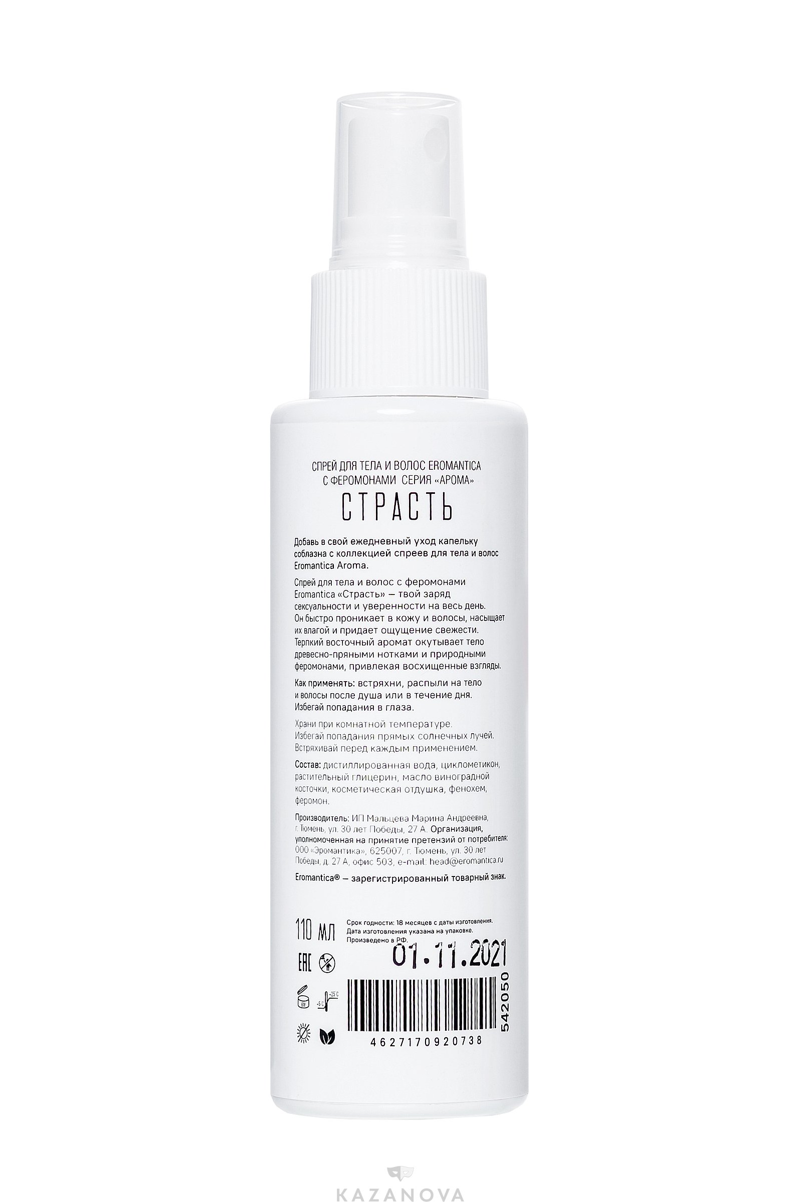 Спрей с феромонами Eromantica «Страсть» для тела и волос 110 мл.