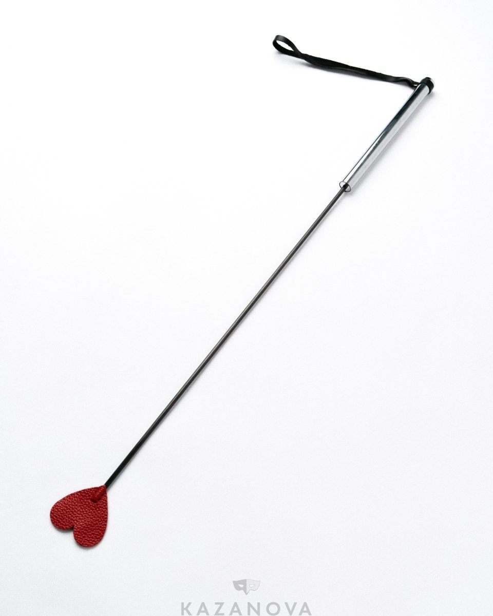 Стек красного цвета состоит хлыста и шлепка. На кончике хлыста имеется окончание в виде сердечка.