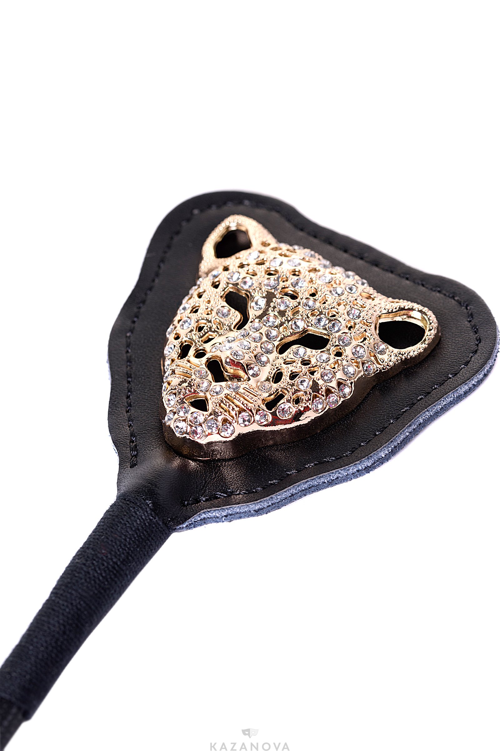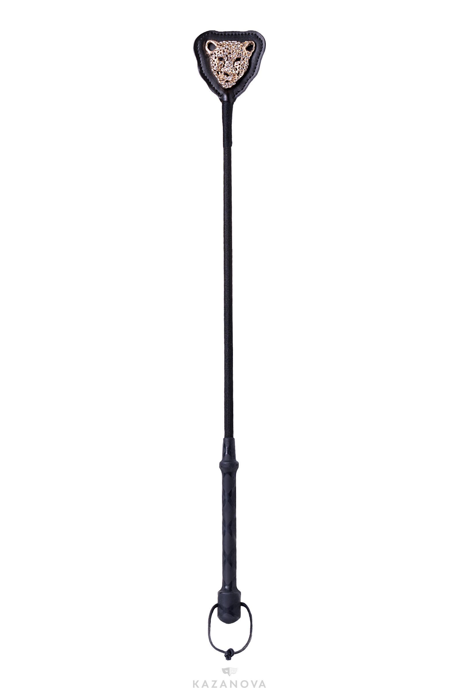 Стек из натуральной кожи с украшением в виде головы леопарда