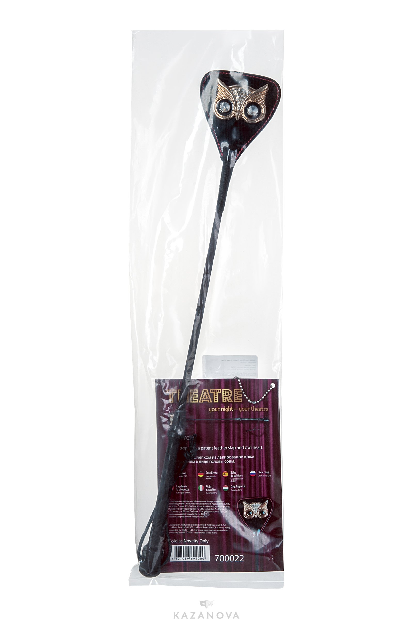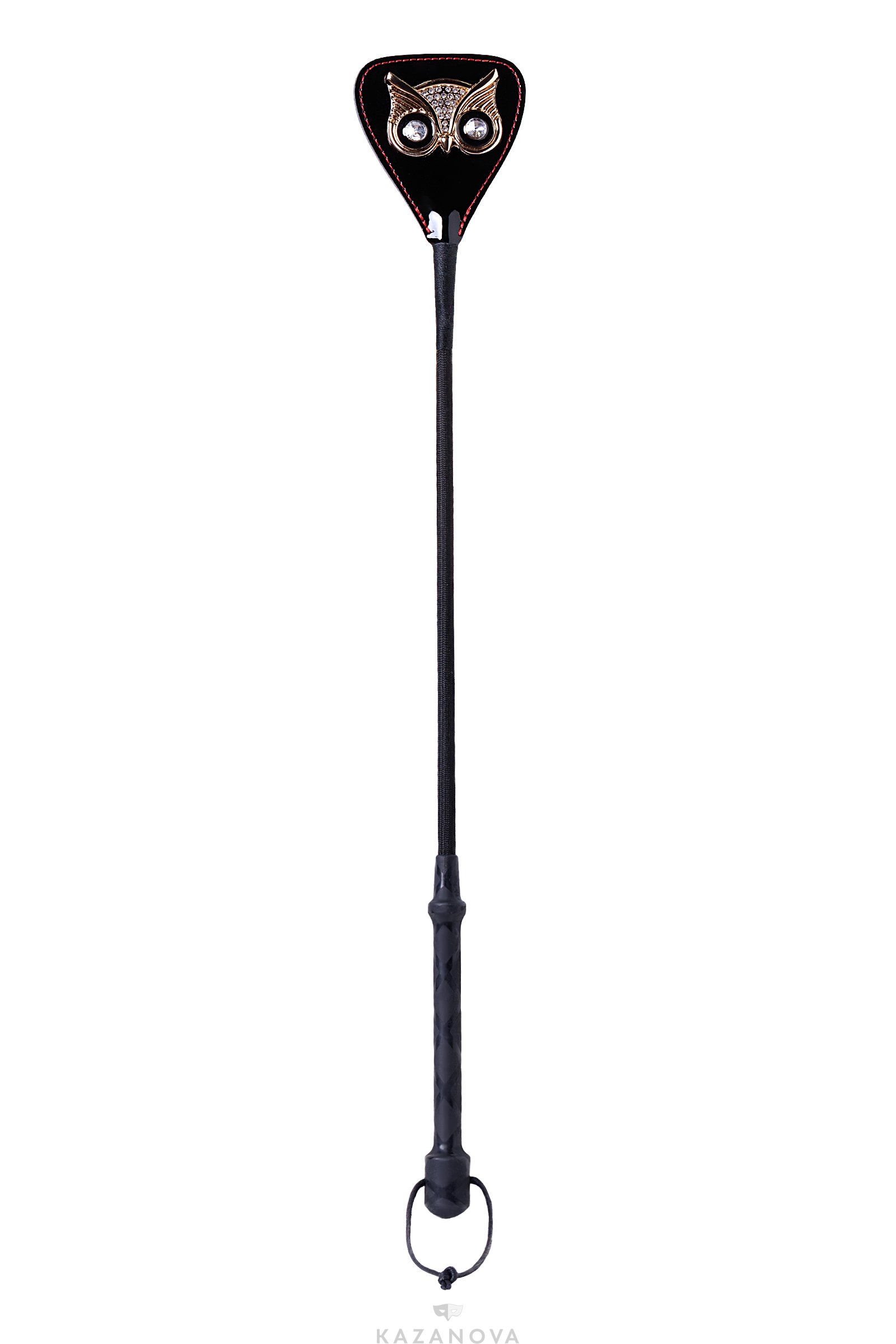 Стек состоит из рукояти, хлыста и шлепка из лакированной кожи. Шлепок имеет украшение в виде головы совы.