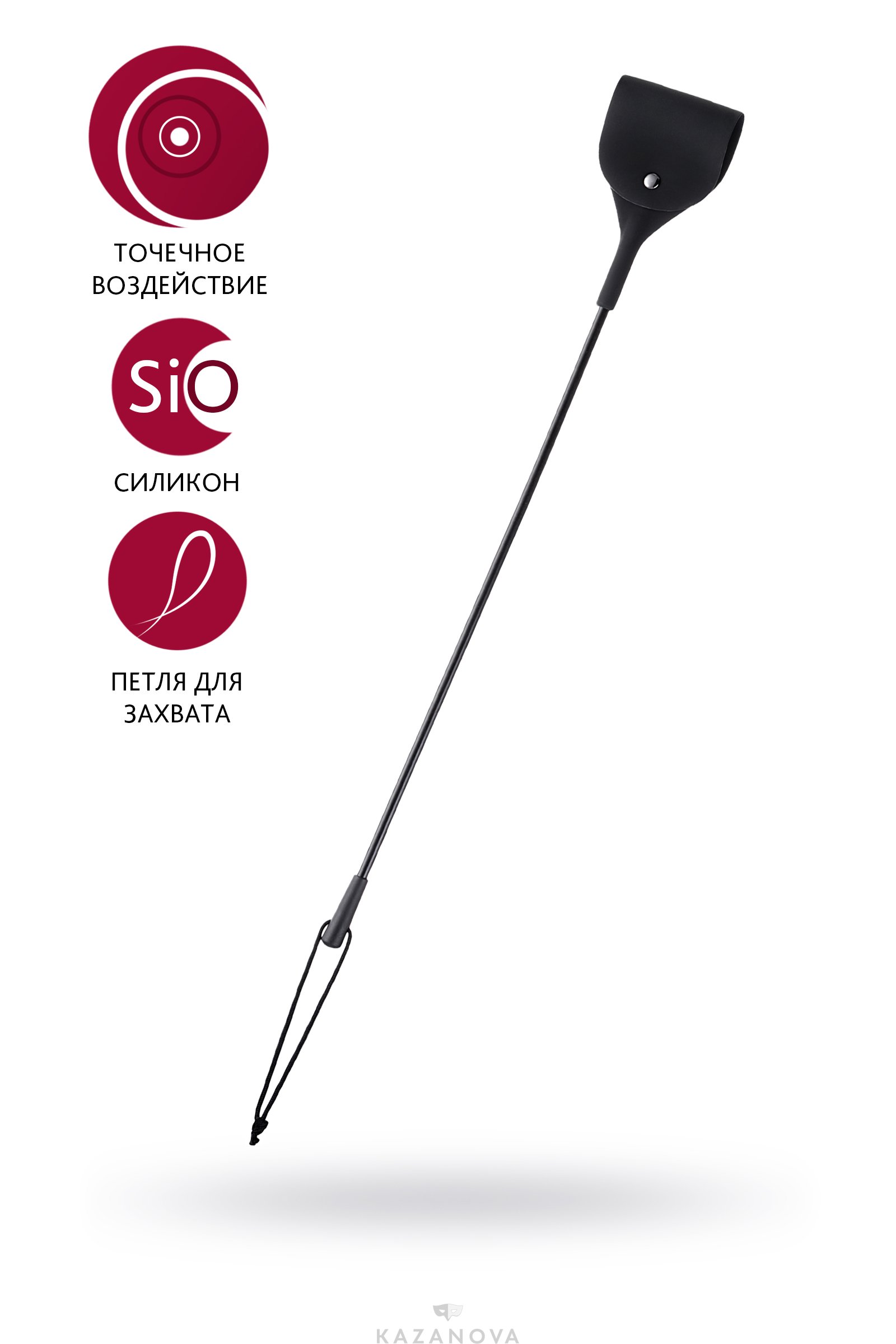 Стек состоит из рукояти, полимерного хлыста и длинного шлепка. Обеспечивает воздействие нужной силы: от легкого до сильного и очень сильного.