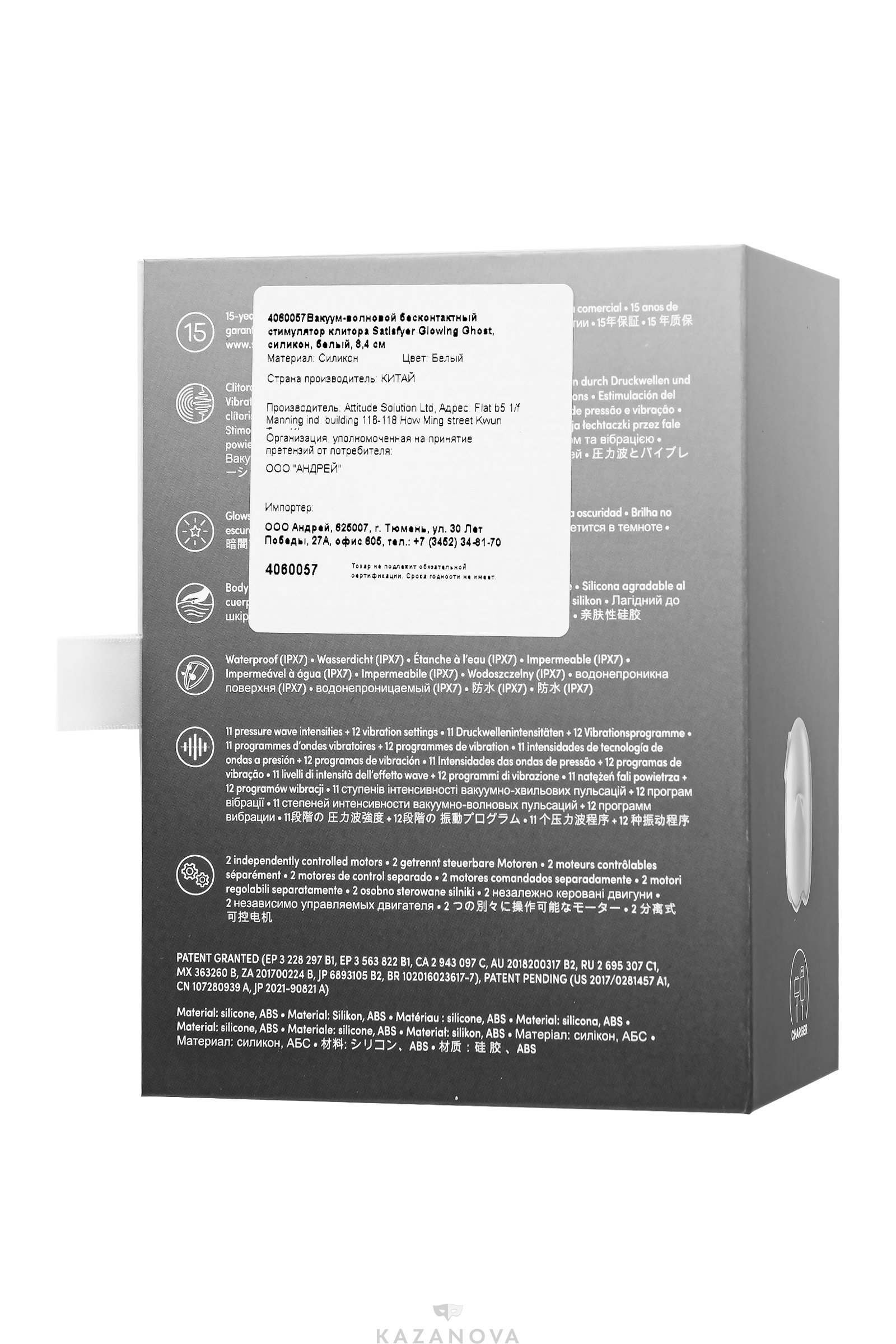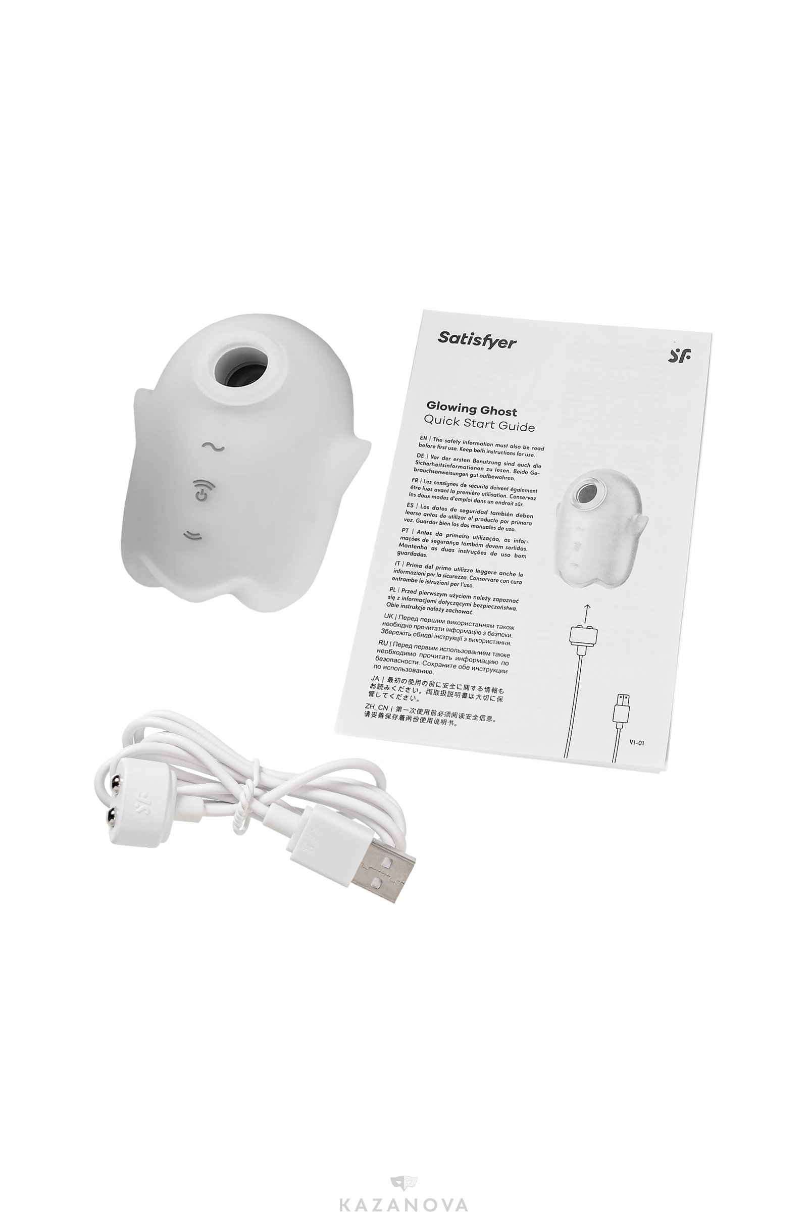 Стимулятор клитора бесконтактный вакуум-волновой Satisfyer Glowing Ghost с вибрацией белый