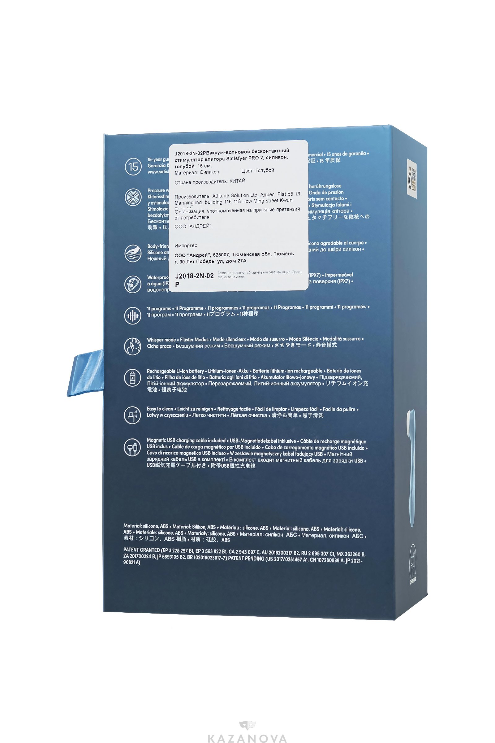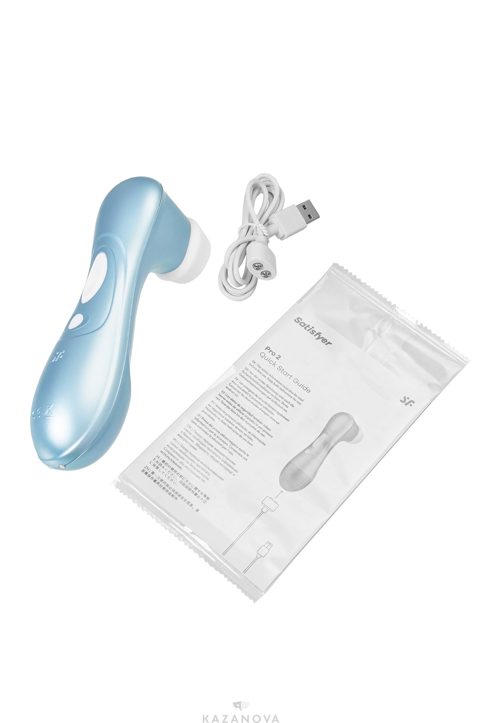 Стимулятор клитора бесконтактный вакуум-волновой Satisfyer PRO 2 из силикона голубой