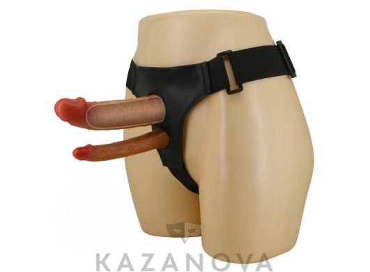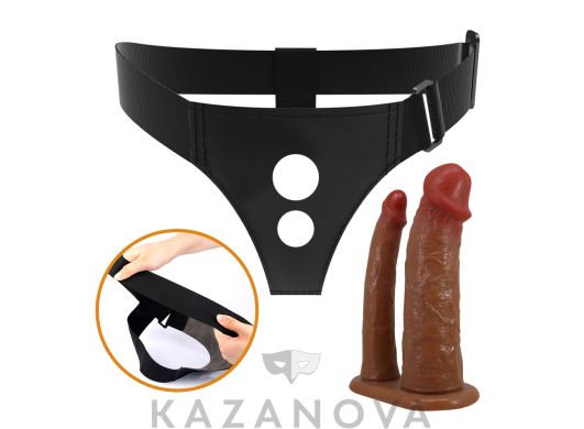 Страпон с большим фаллоимитатором подходит для мужчин и женщин, практикующих фистинг.