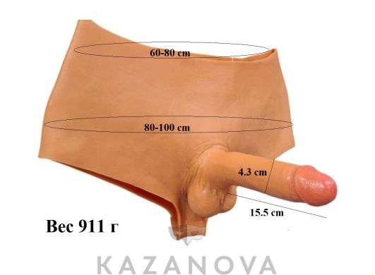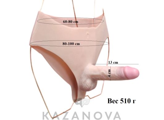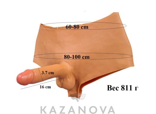 Фаллоимитатор изготовлен из киберкожи и выглядит максимально реалистично. Фиксируется на трусиках с помощью крепления в виде кольца. Фаллоимитатор можно использовать отдельно.