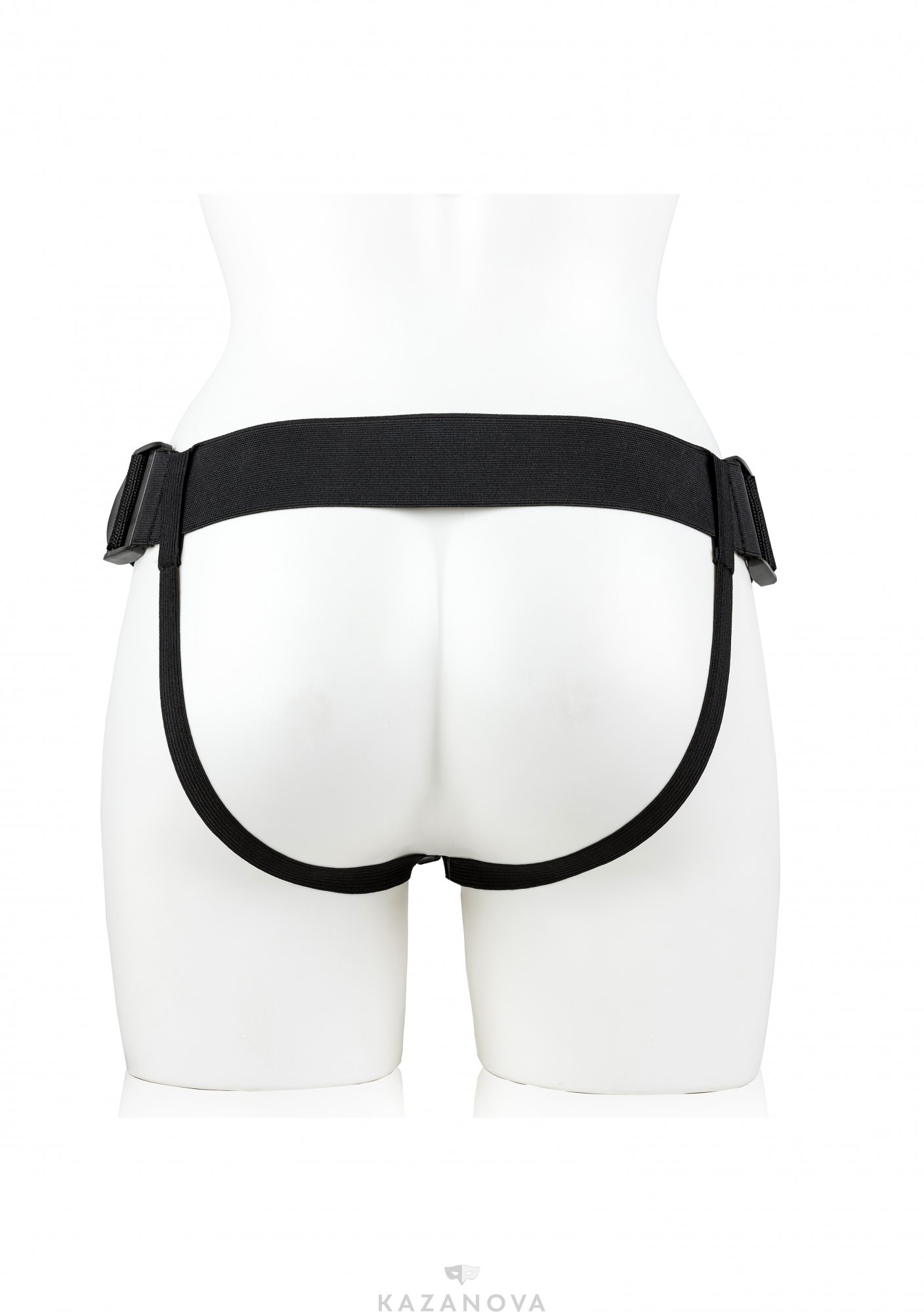 Страпон фиксируется на теле при помощи специальной системы ремней, которая подстраивается под индивидуальные параметры.
