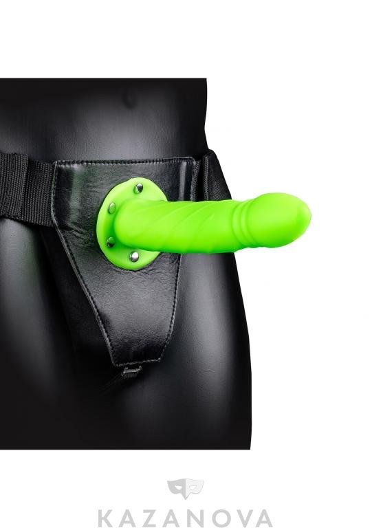 Страпон Ouch! Hollow Strap-On Twisted светящийся зеленый 20 см
