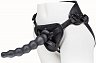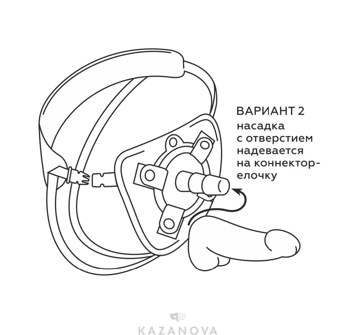Пояс с регулируемыми креплениями подходит для любой комплекции, сделан из искусственной кожи. В комплект входят две насадки: реалистичная в виде полового члена из кибекожи и рельефная для анальной стимуляции.