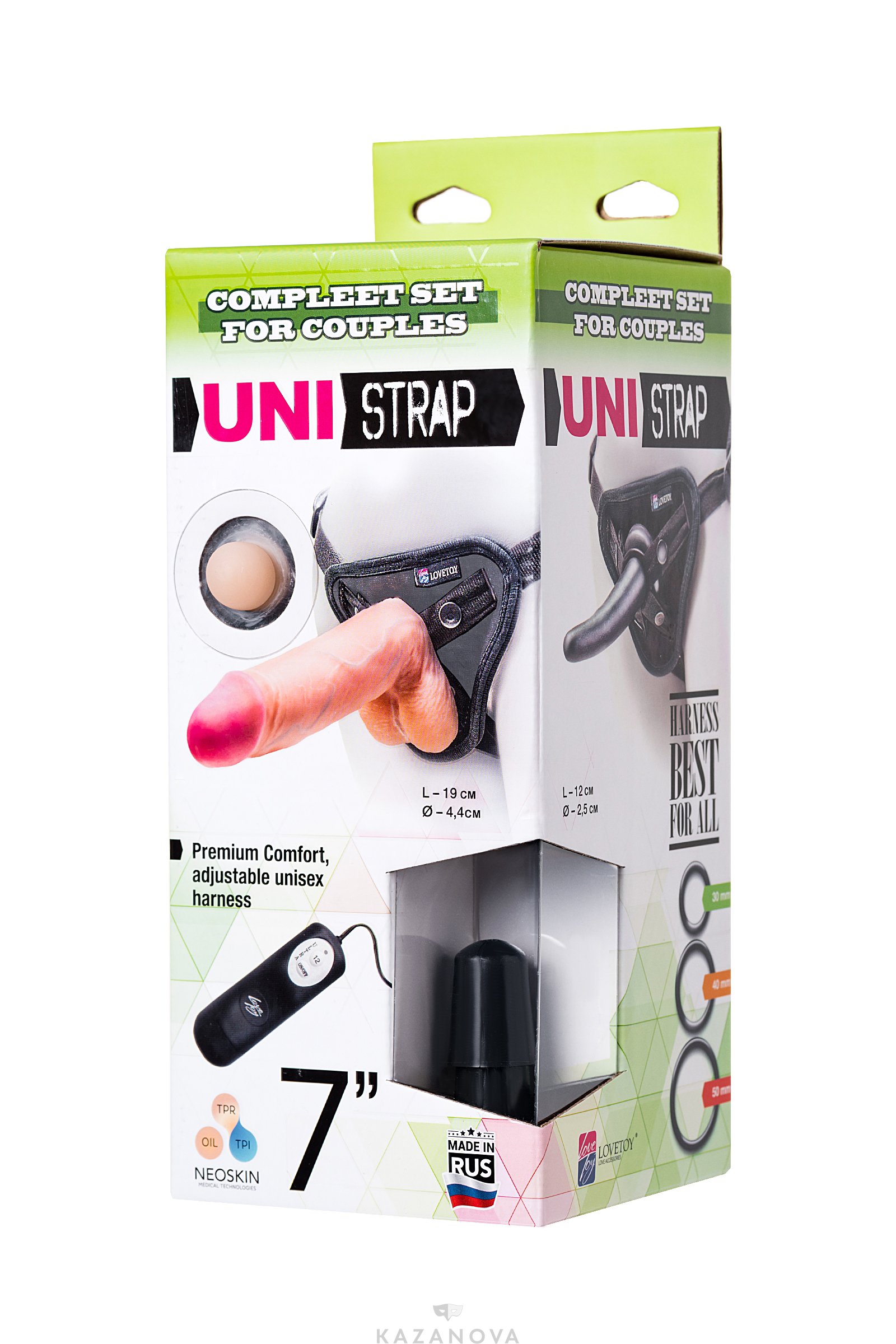 Страпон с двумя насадками Uni Strap из киберкожи с вибрацией 313