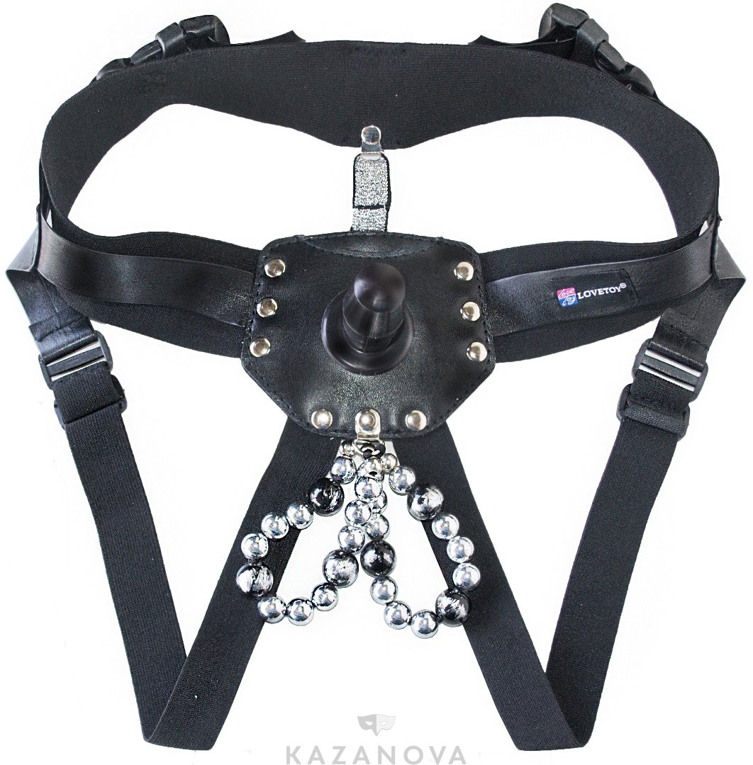 Пояс с регулируемыми креплениями подходит для любой комплекции, сделан из искусственной кожи. В комплект входят реалистичная насадка из киберкожи и жемчужный пояс для стимуляции клитора активной стороны.