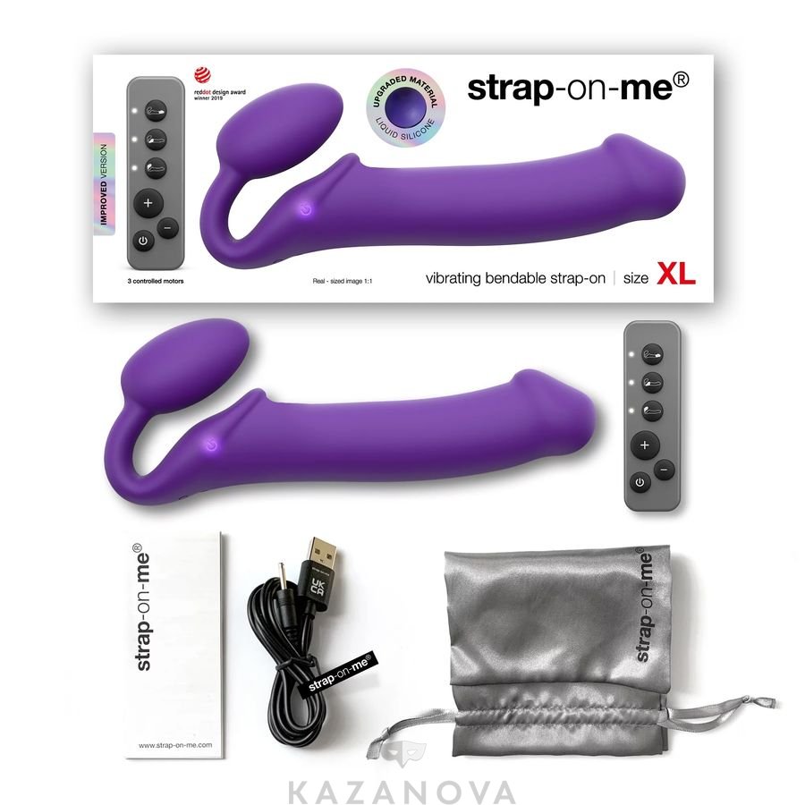 Страпон женский STRAP-ON-ME анатомический с вибрацией и д/у XL фиолетовый
