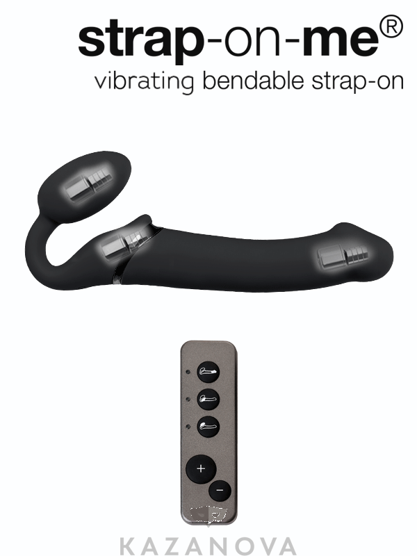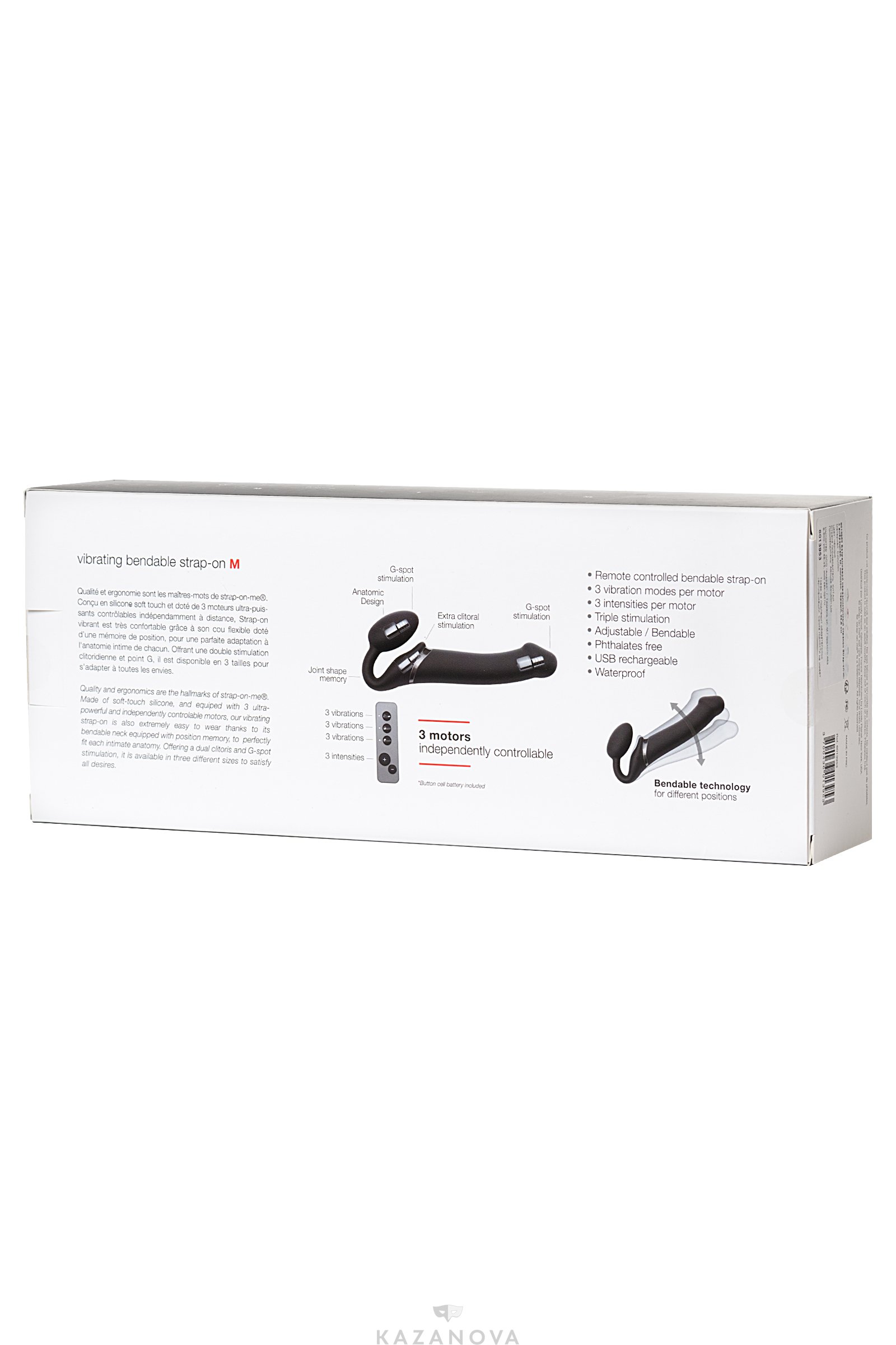 Страпон женский STRAP-ON-ME анатомический с вибрацией и пультом д/у M черный